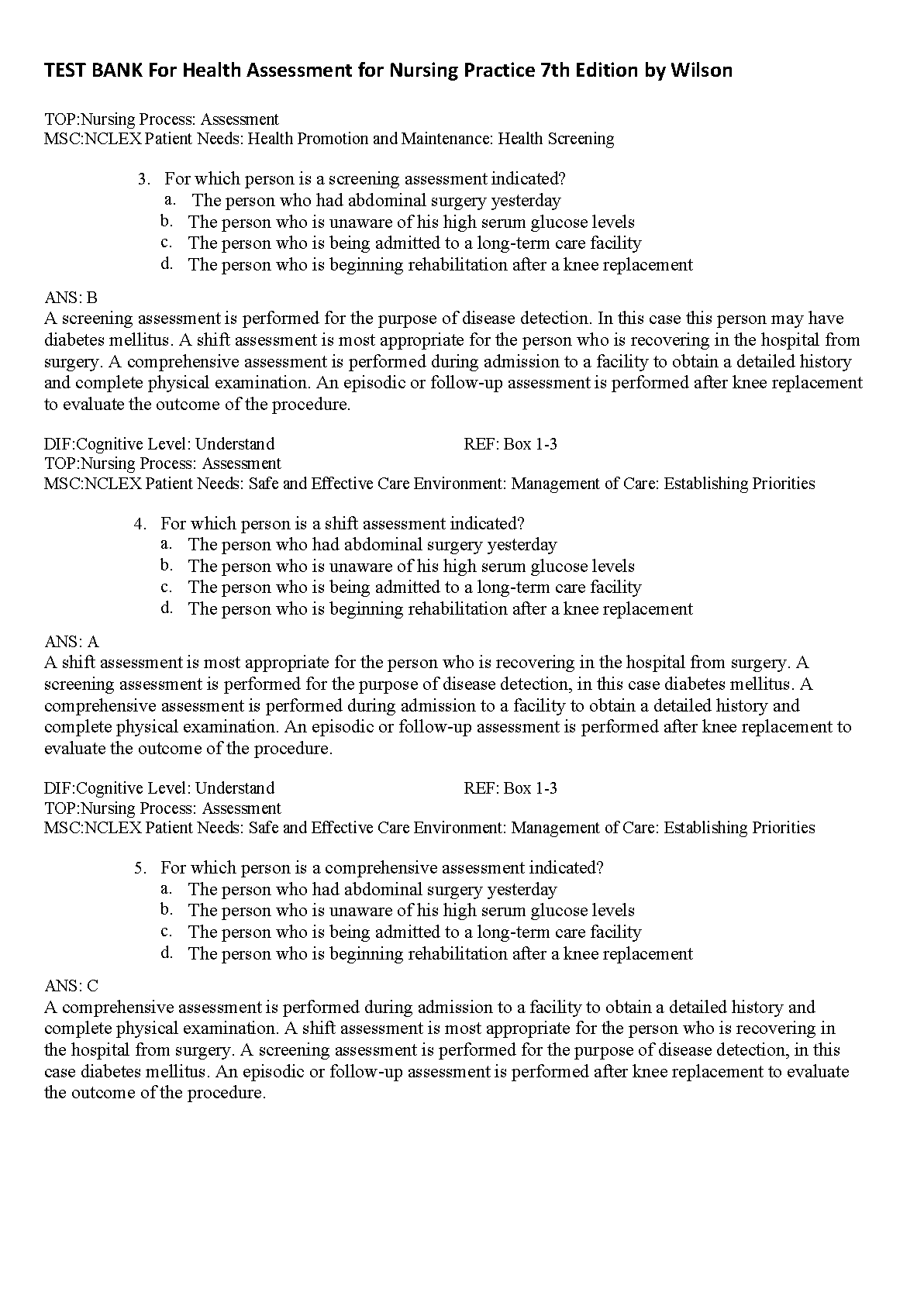 Test Bank for Health Assessment for Nursing Practice, 7th Edition by Susan Fickertt Wilson & Jean Foret Giddens