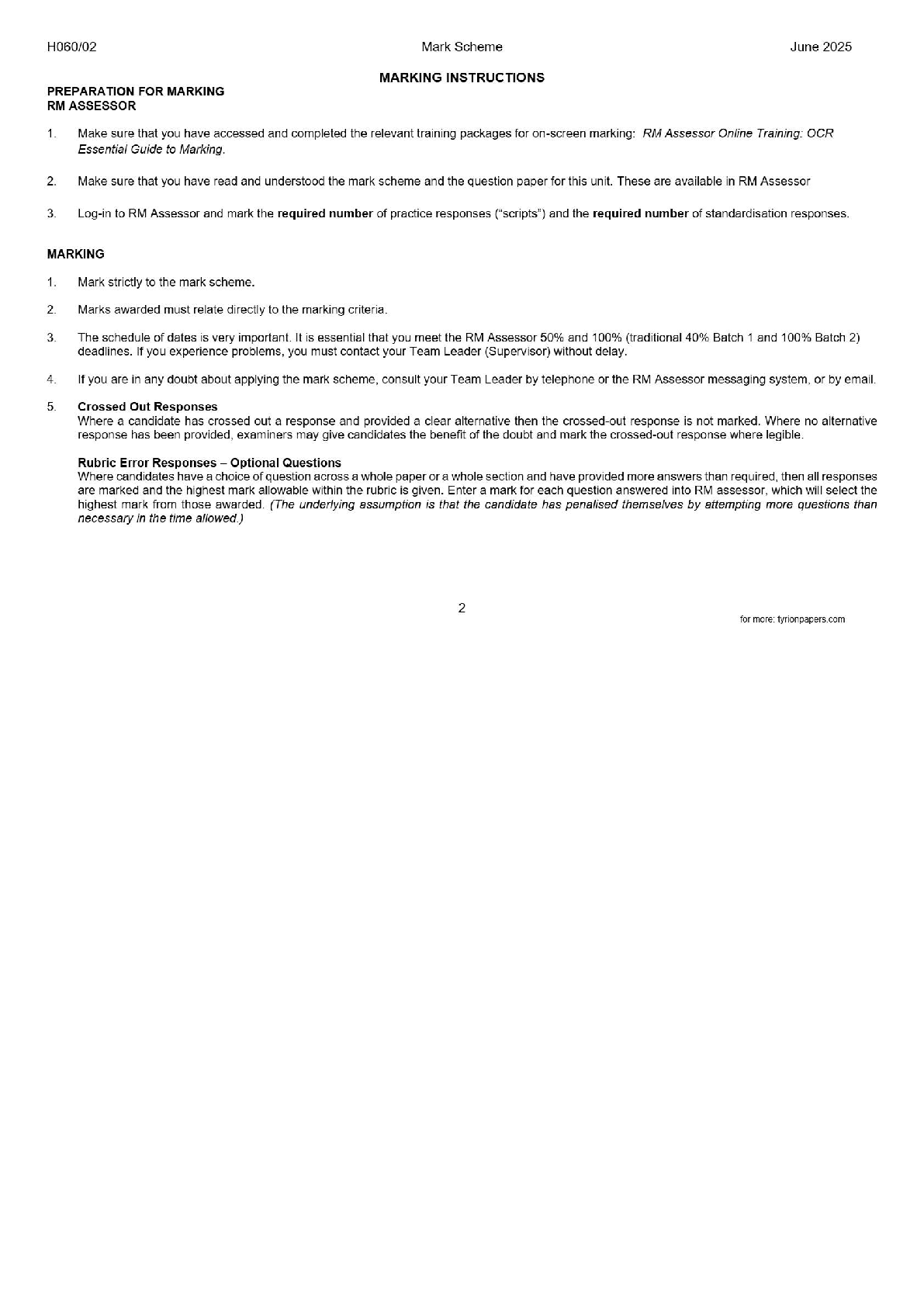 Master the OCR AS Level Economics Macroeconomics exam with the official June 2025 Mark Scheme for paper H060/02. This document is the definitive guide to understanding how your exam will be graded, providing detailed answers and the exact criteria examiners use to award marks. An essential resource for effective revision, this mark scheme allows you to check your work, identify areas for improvement, and perfect your exam technique to achieve the highest possible grade. Download now to gain a critical advantage in your exam preparation.