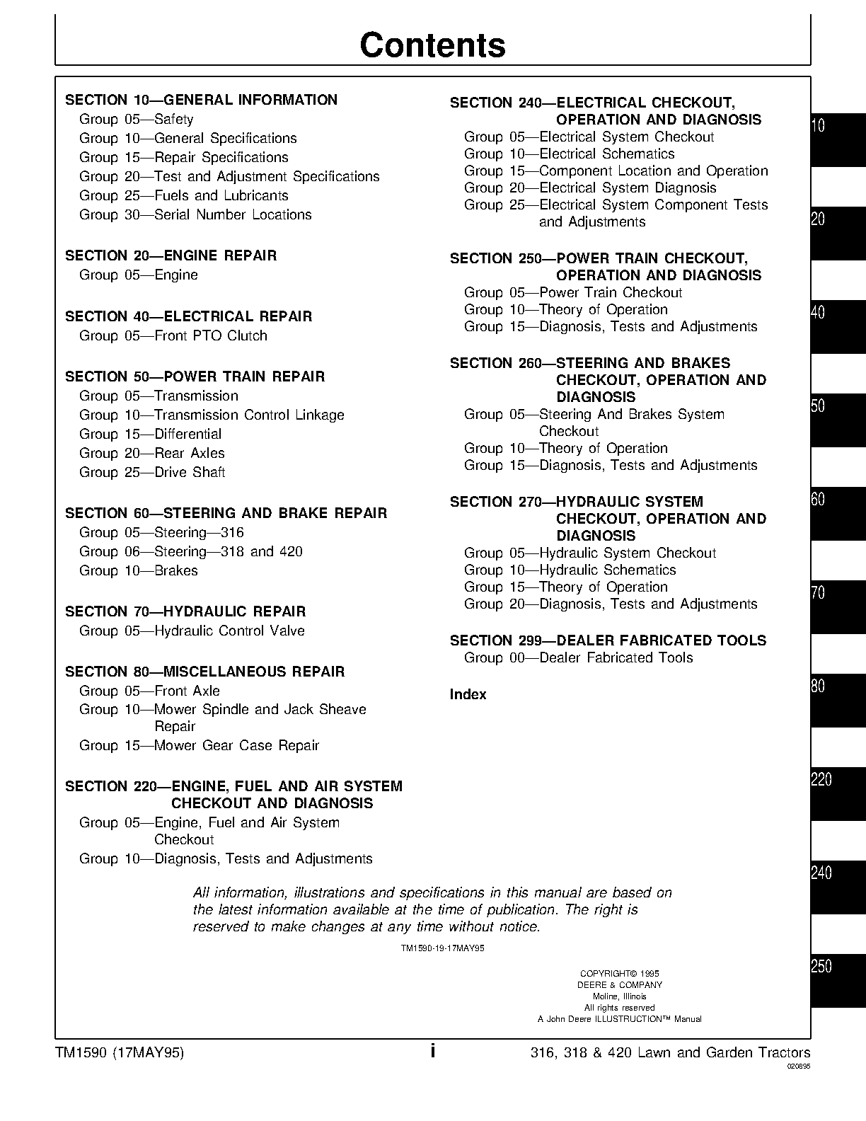 Complete Service & Repair Manual for John Deere 316, 318, 420 Lawn Tractors | TM1590 (1995 Edition) by John Deere Horicon Works