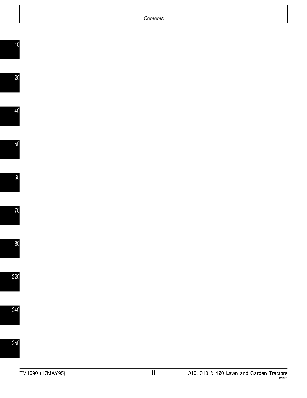 Gain instant access to the official John Deere Technical Manual TM1590, the ultimate guide for servicing and repairing your 316, 318, and 420 Lawn and Garden Tractors. This comprehensive manual, published in May 1995 by John Deere Horicon Works, provides detailed instructions, diagrams, and specifications to help you perform everything from routine maintenance to complex repairs. Ensure your tractor runs perfectly with factory-approved procedures. Note: For complete engine service, this manual should be used in conjunction with the Onan Engines manual CTM2.