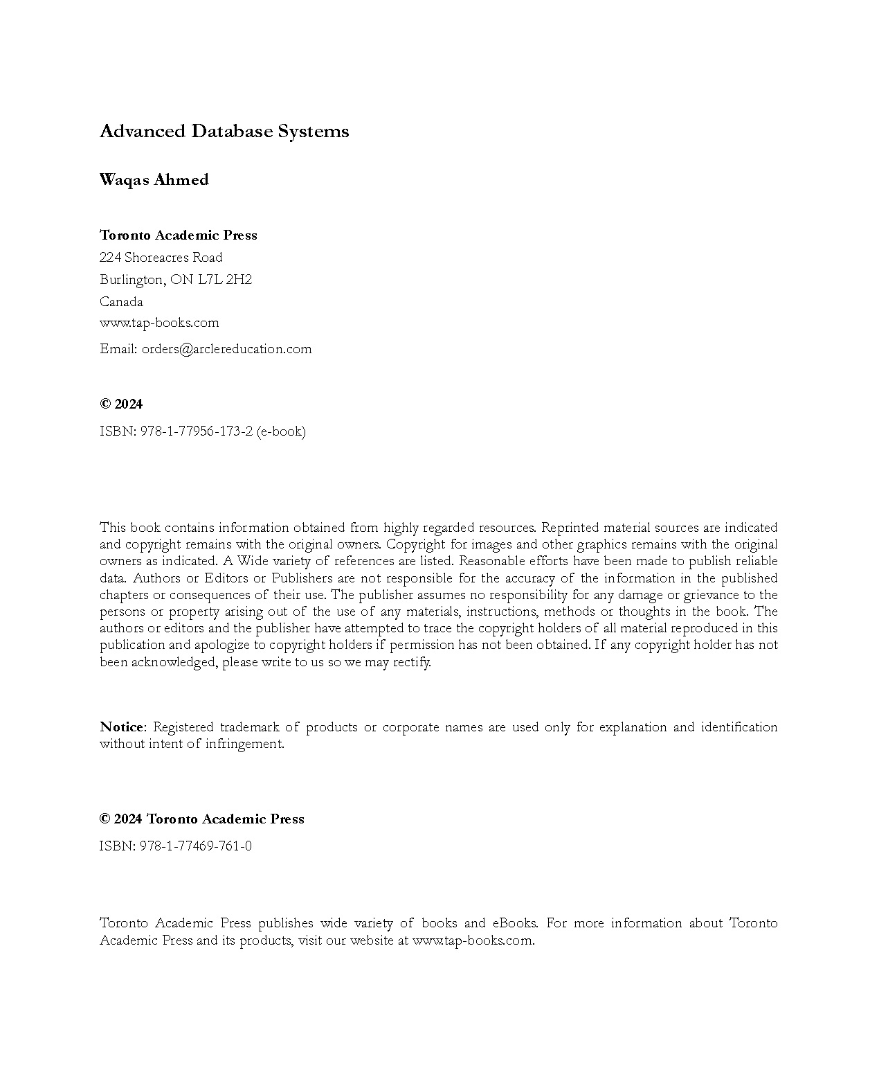 Test Bank for Advanced Database Systems, 1st Edition by Waqas Ahmed, Arshad Ali, and Zobia Rehman