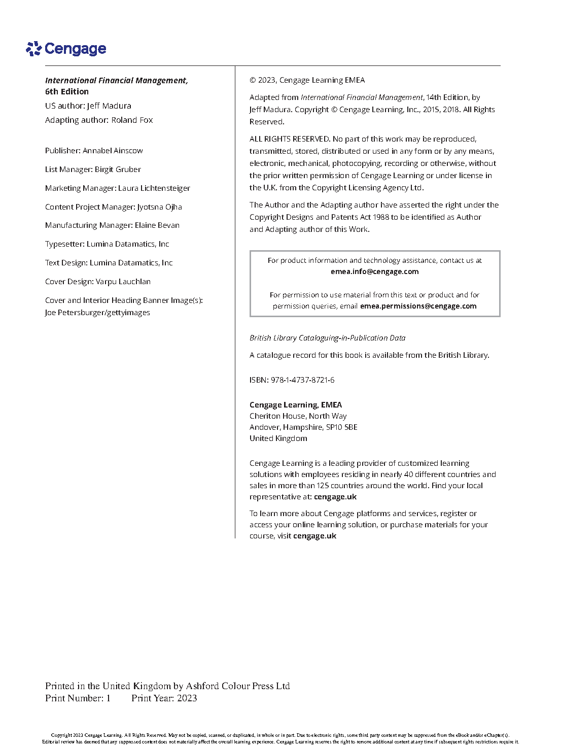 Test Bank for International Financial Management, 6th Edition by Jeff Madura and Roland Fox