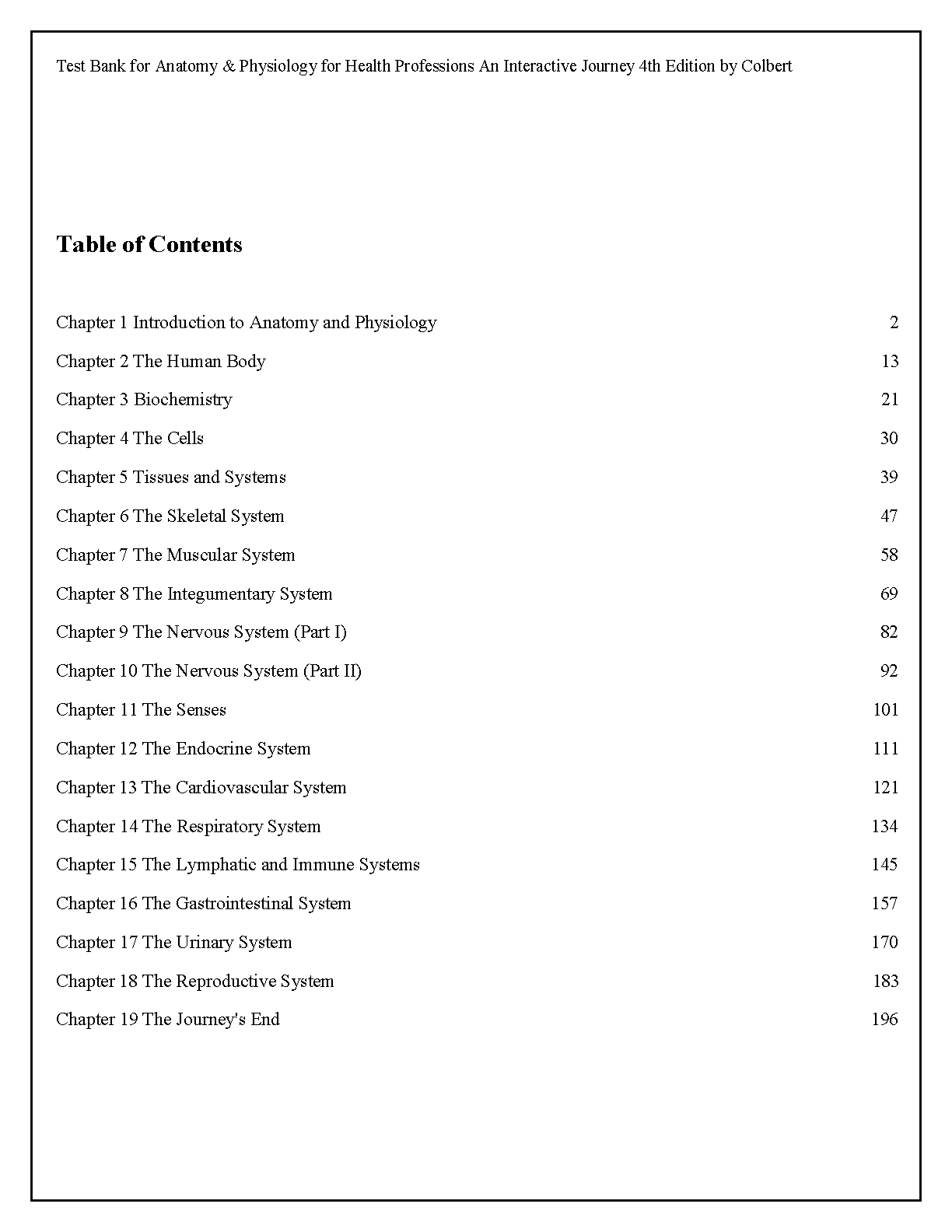 Test Bank for Anatomy & Physiology for Health Professions: An Interactive Journey, 4th Edition by Bruce J. Colbert, Jeff Ankney, Karen T. Lee