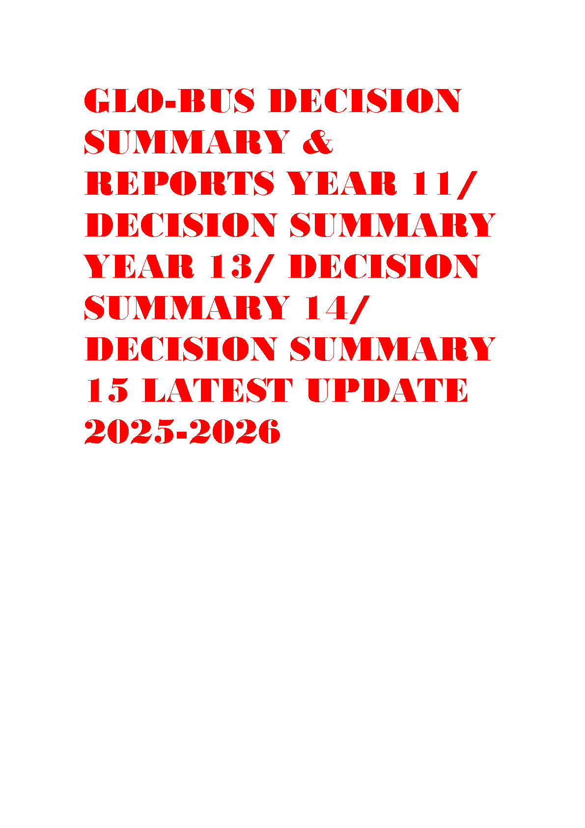 Struggling with the GLO-BUS business simulation? Unlock top scores and guarantee a pass on your first attempt with our exclusive guide! This digital resource offers a complete collection of winning Decision Summaries and Reports for Years 11, 13, 14, and 15 of the acclaimed simulation by Thompson, Stappenbeck, and Reidenbach. Freshly updated for the 2025-2026 academic year, this is the most current and effective tool to help you navigate complex strategic choices, outperform your rivals, and secure a high grade. Avoid the stress of resits and learn the strategies that lead to success. Download now and start making winning decisions today!