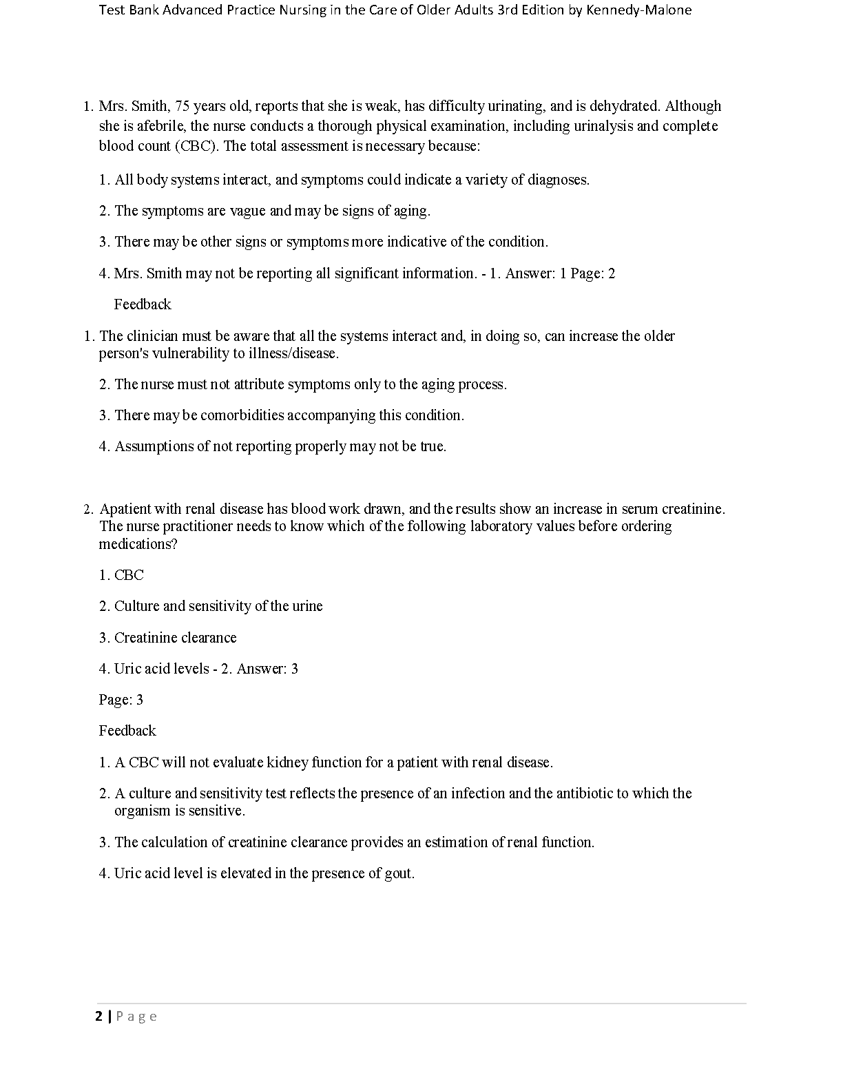 Test Bank for Advanced Practice Nursing in the Care of Older Adults, 3rd Edition by Laurie Kennedy-Malone & Kathleen M. Groenke-Duffy