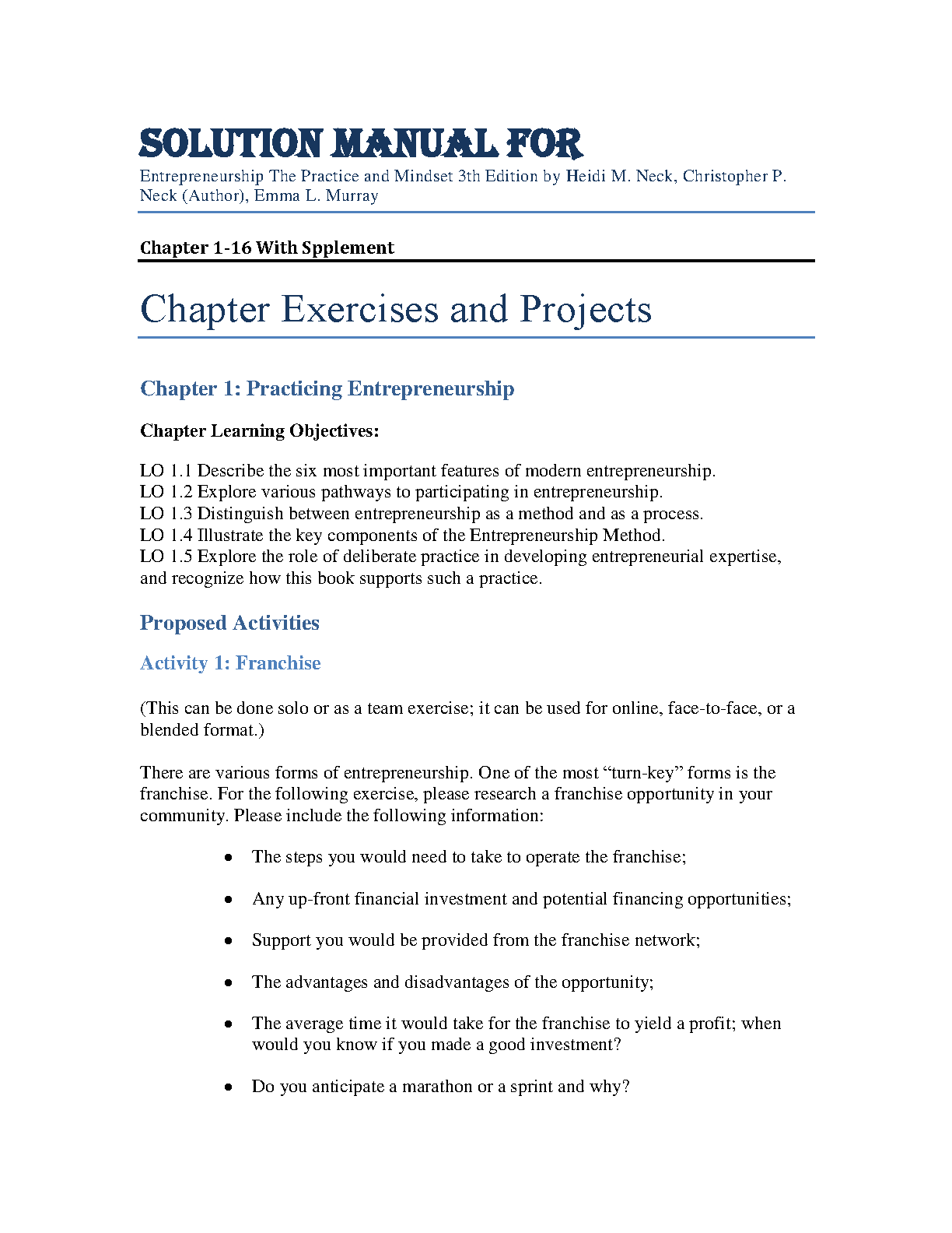Solution Manual for Entrepreneurship: The Practice and Mindset, 3rd Edition by Heidi M. Neck, Christopher P. Neck, Emma L. Murray