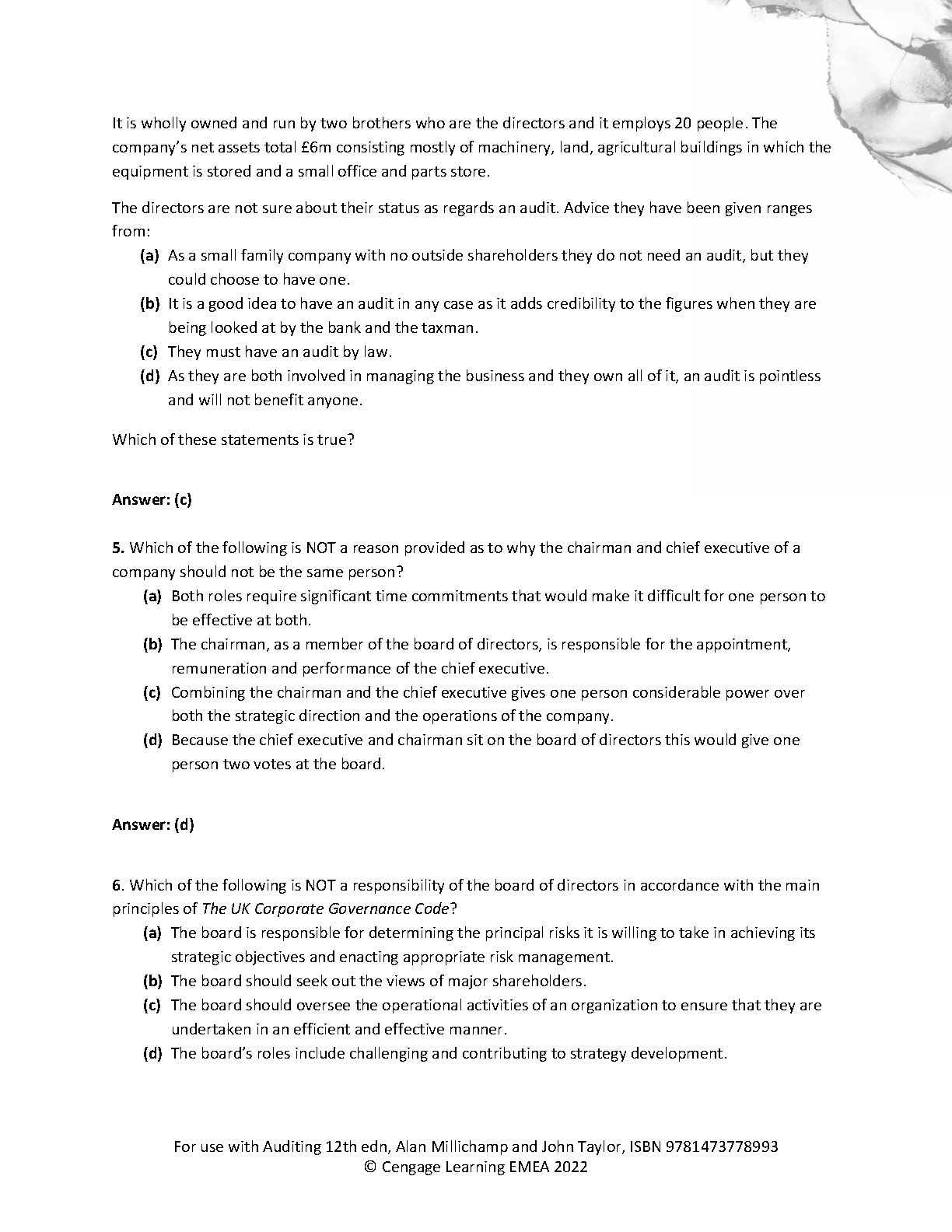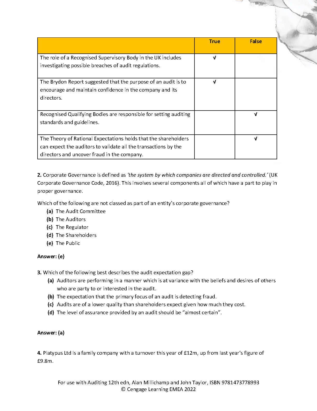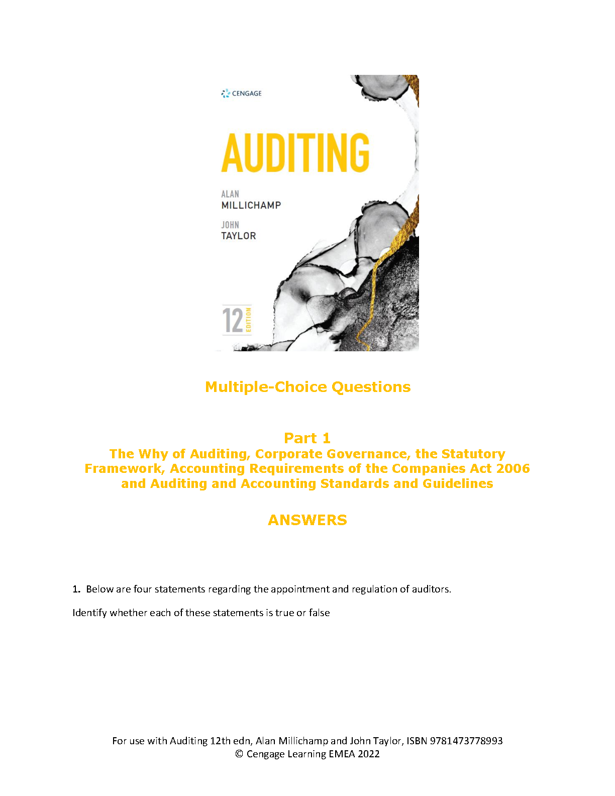 Test Bank for Auditing, 12th Edition, by Alan Millichamp and John Taylor