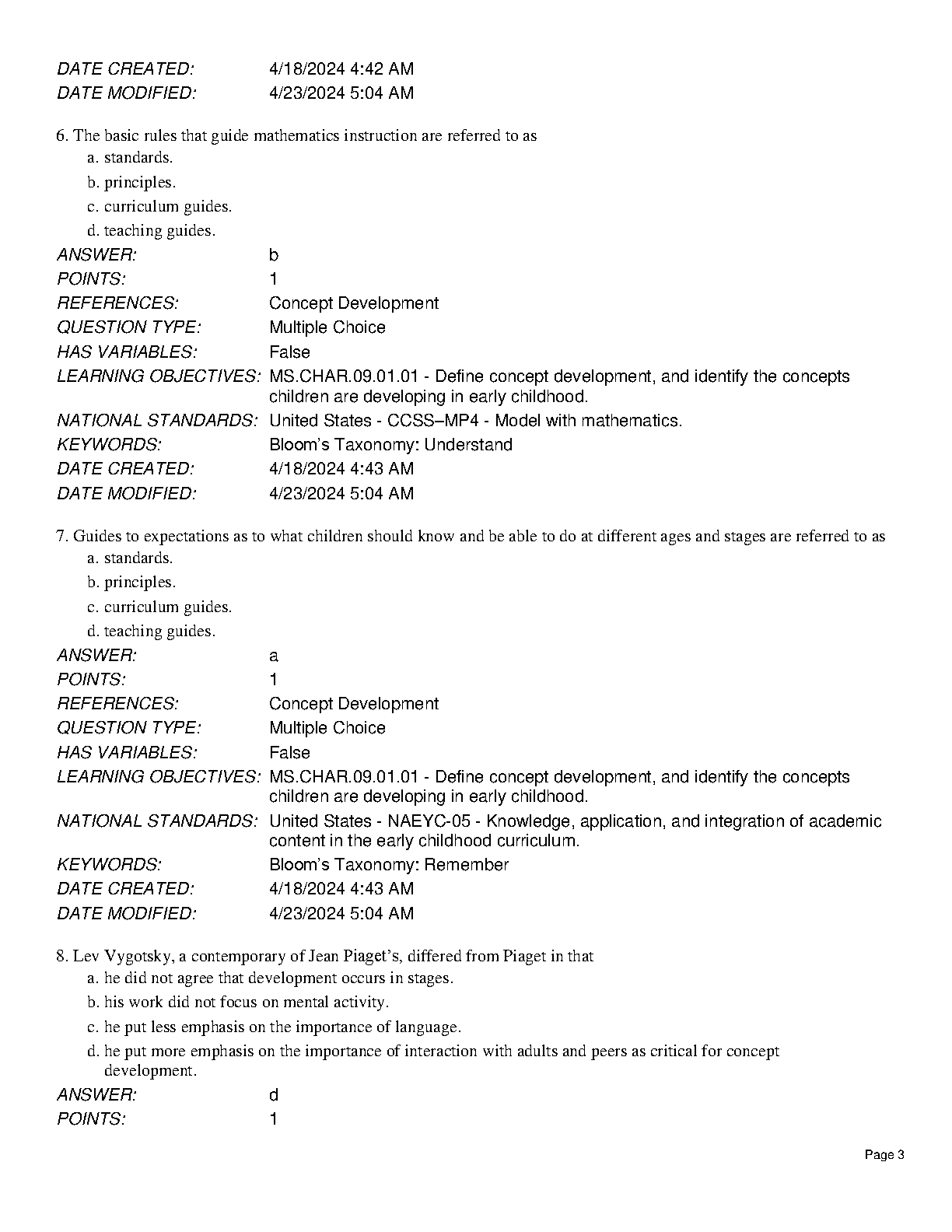 Test Bank for Math and Science for Young Children, 9th Edition by Rosalind Charlesworth, Karen K. Lind & Heather A. Kile