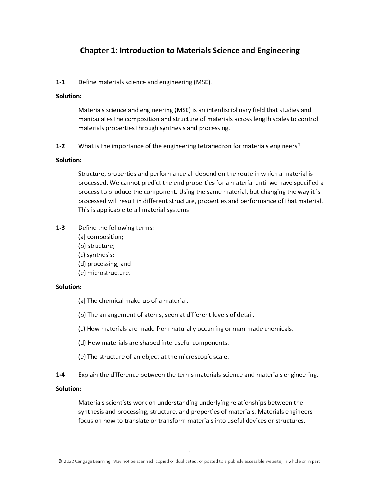 Access the complete Chapter 1 Test Bank for 'The Science and Engineering of Materials, 8th Edition'. This essential study guide provides in-depth, verified solutions and answers to key introductory questions. Master foundational concepts like the engineering tetrahedron, composition, structure, synthesis, processing, and microstructure. This resource is expertly crafted to help you grasp complex topics, prepare effectively for exams, and achieve top grades in your Materials Science and Engineering course.
