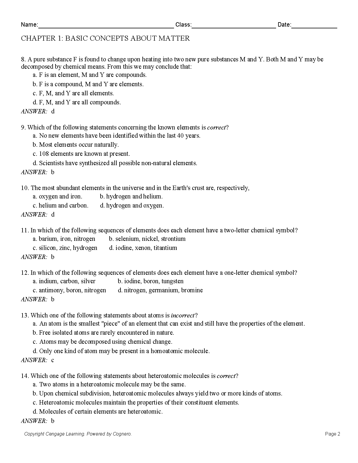 Unlock your full potential in chemistry with the official Test Bank for the 10th Edition of 'Chemistry for Today' by Seager, Slabaugh, and Hansen. This comprehensive resource is packed with exam-style questions and verified answers for every chapter, including 'Basic Concepts About Matter.' Designed to challenge your understanding and reinforce key concepts, this test bank is the ultimate tool for exam preparation, helping you to master course material and excel in your assessments.