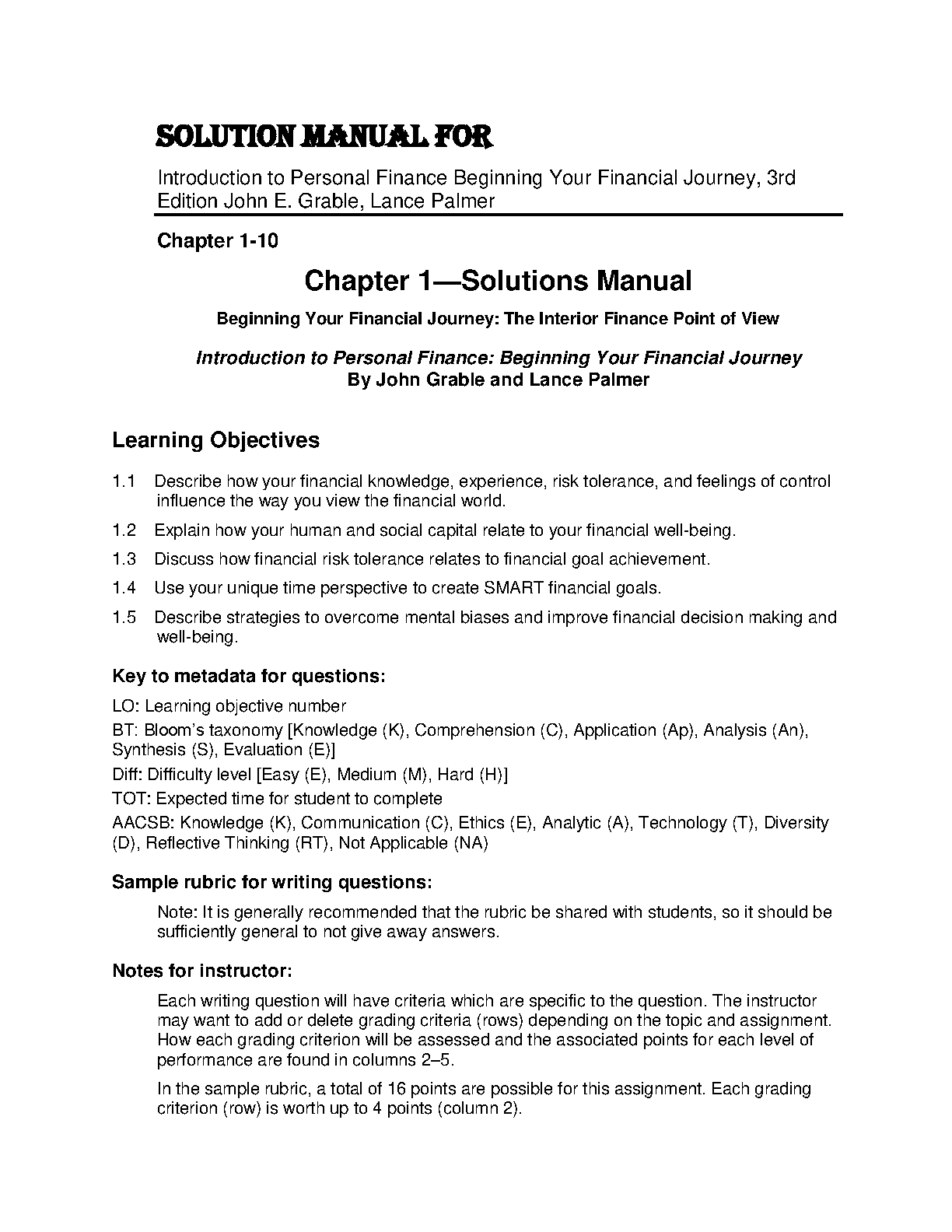 Solution Manual for Introduction to Personal Finance: Beginning Your Financial Journey, 3rd Edition by John E. Grable and Lance Palmer