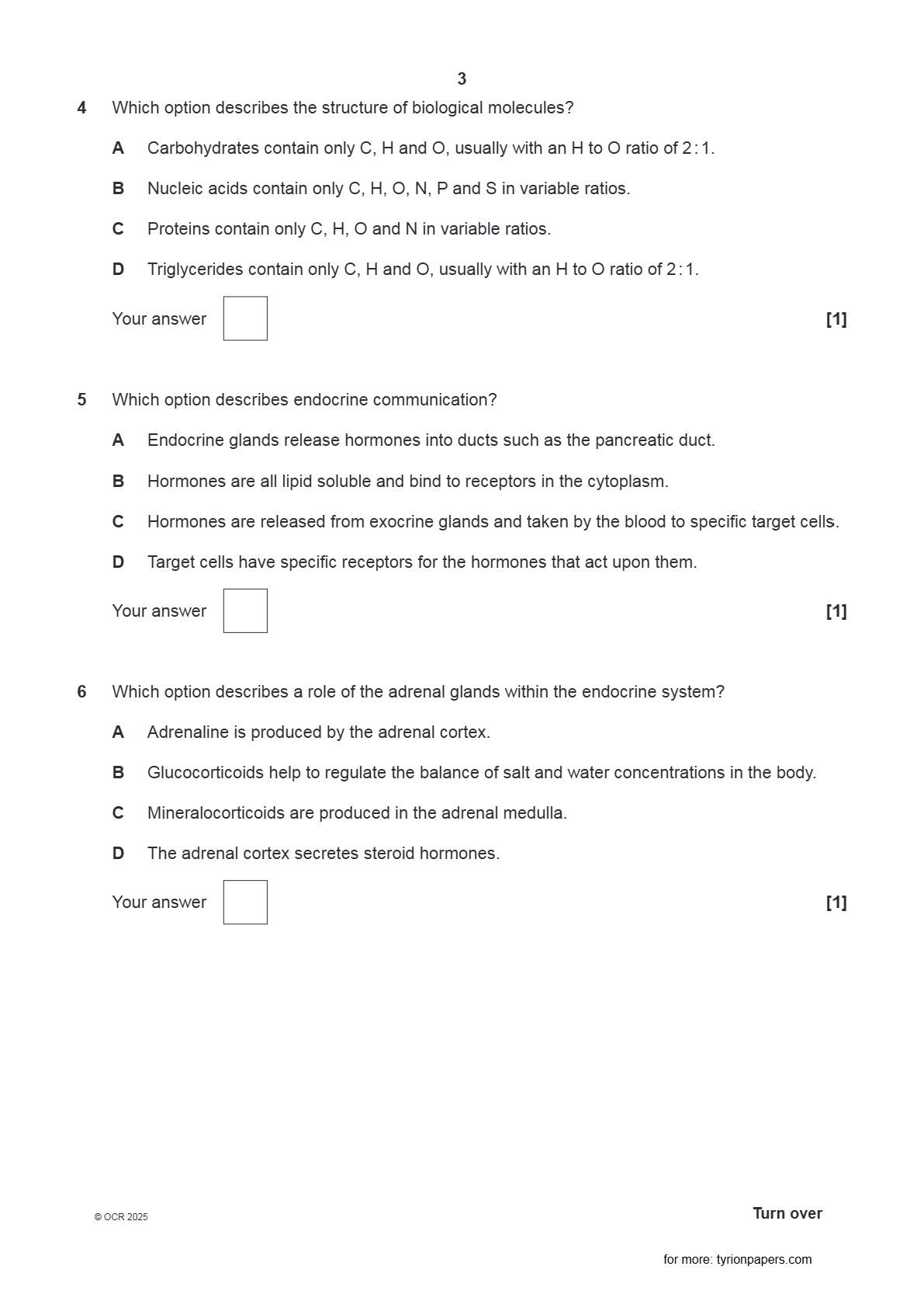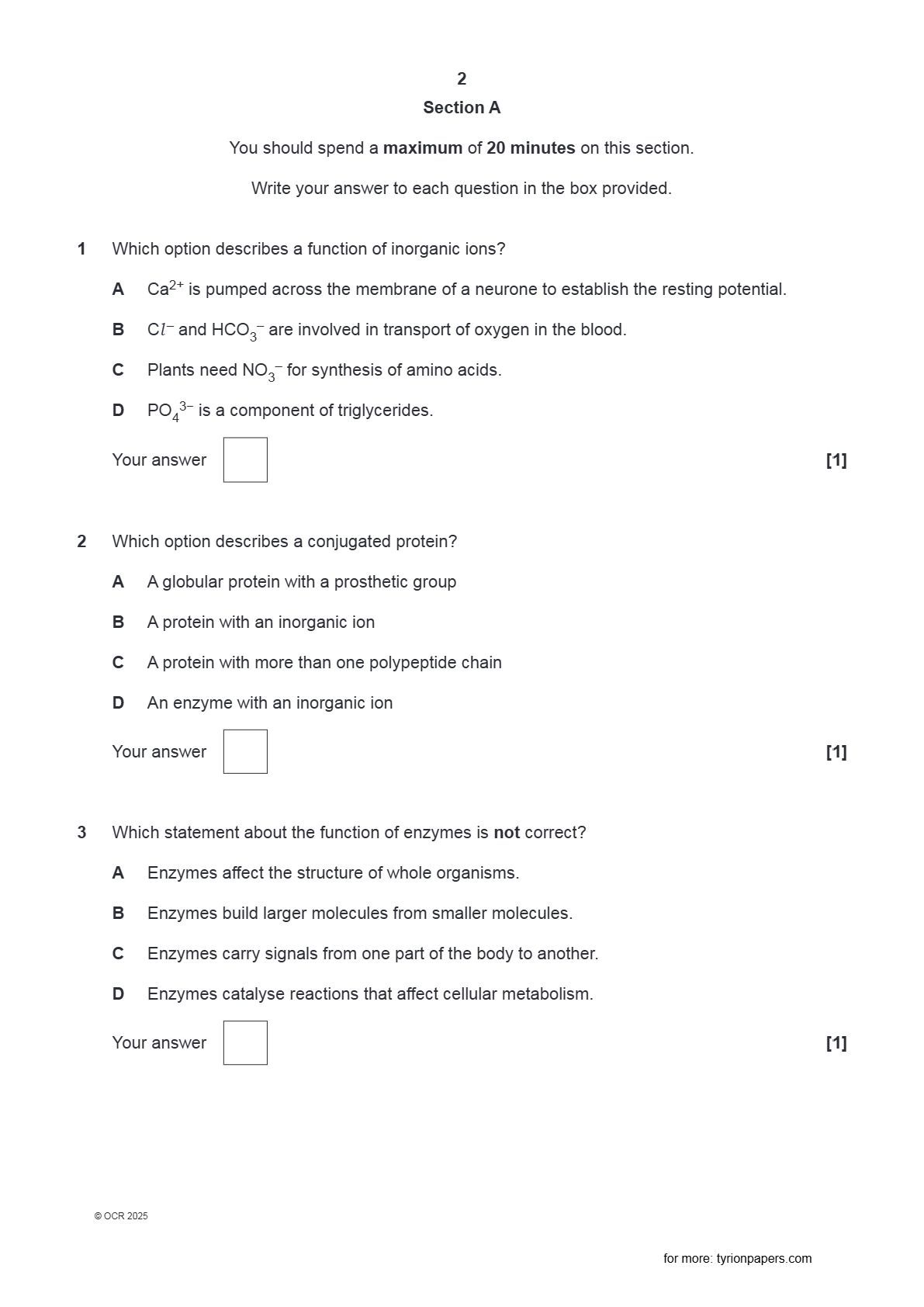 Latest OCR A Level Biology A (H420/01) June 2025 Exam Paper | 2025/2026 First-Attempt Pass Resource