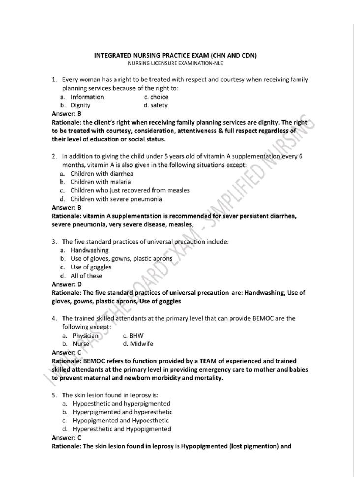 Master the NLE: Integrated Nursing Practice (CHN & CDN) Exam Test Bank with Questions, Answers, and Rationales