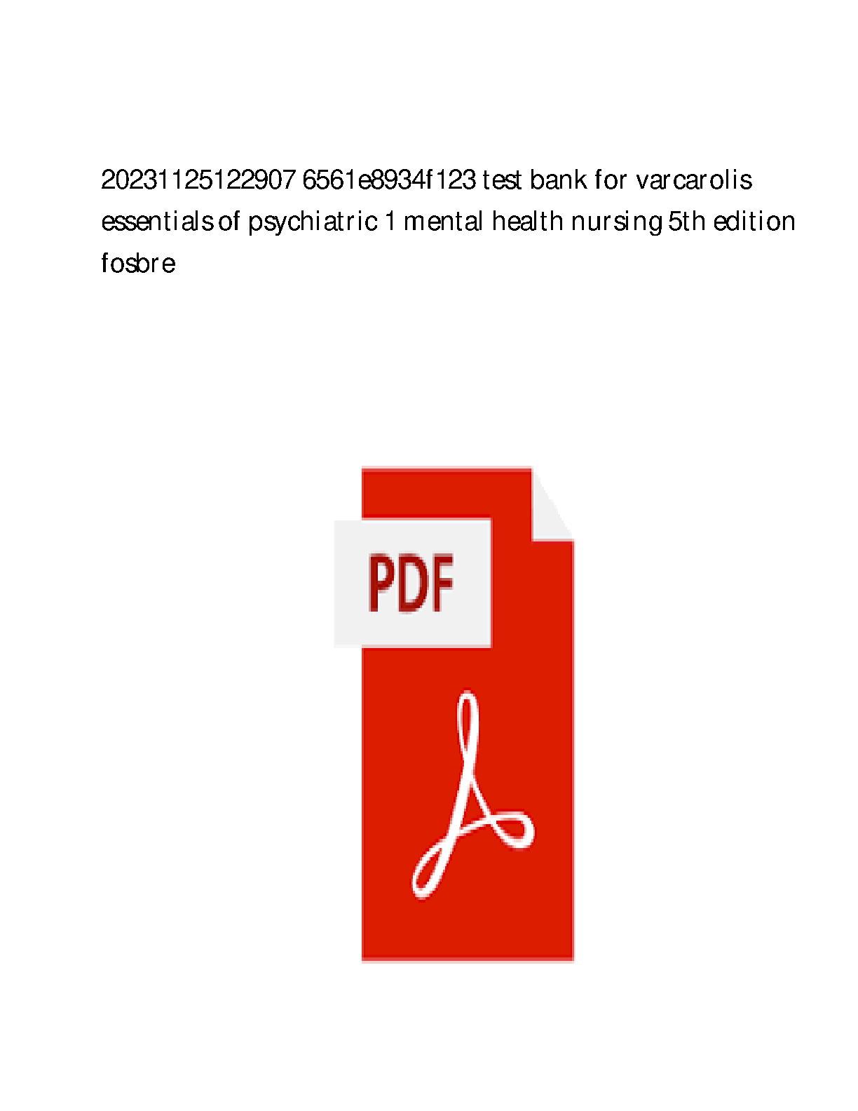 Achieve top grades in your psychiatric nursing course with our authentic Test Bank for the 5th Edition of 'Essentials of Psychiatric Mental Health Nursing' by Collins and Fosbre. This indispensable study tool features a complete collection of chapter-by-chapter questions and detailed rationales, mirroring the format and difficulty of your actual exams. Prepare effectively, test your knowledge, and build the confidence to excel. Get immediate access to the downloadable PDF and start studying smarter today.
