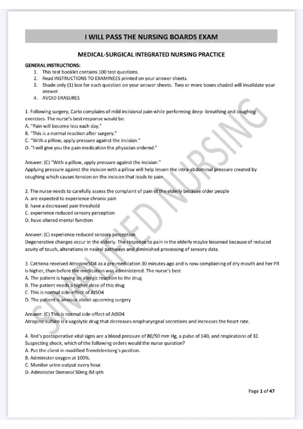 Ace your Medical-Surgical nursing exams and the NCLEX with our newly updated 2025/2026 practice test bank. This comprehensive resource features 100 challenging, NCLEX-style questions covering the full spectrum of Medical-Surgical Integrated Nursing Practice. Each question is paired with a detailed rationale, explaining not just the correct answer, but why the other options are incorrect. This approach is designed to deepen your understanding and enhance critical thinking skills, ensuring you are fully prepared to pass your nursing boards on your first attempt. Topics include postoperative care, pain management in diverse populations, pharmacology, and emergency response. Avoid resits and step into your exam with confidence by mastering the concepts in this essential study guide.