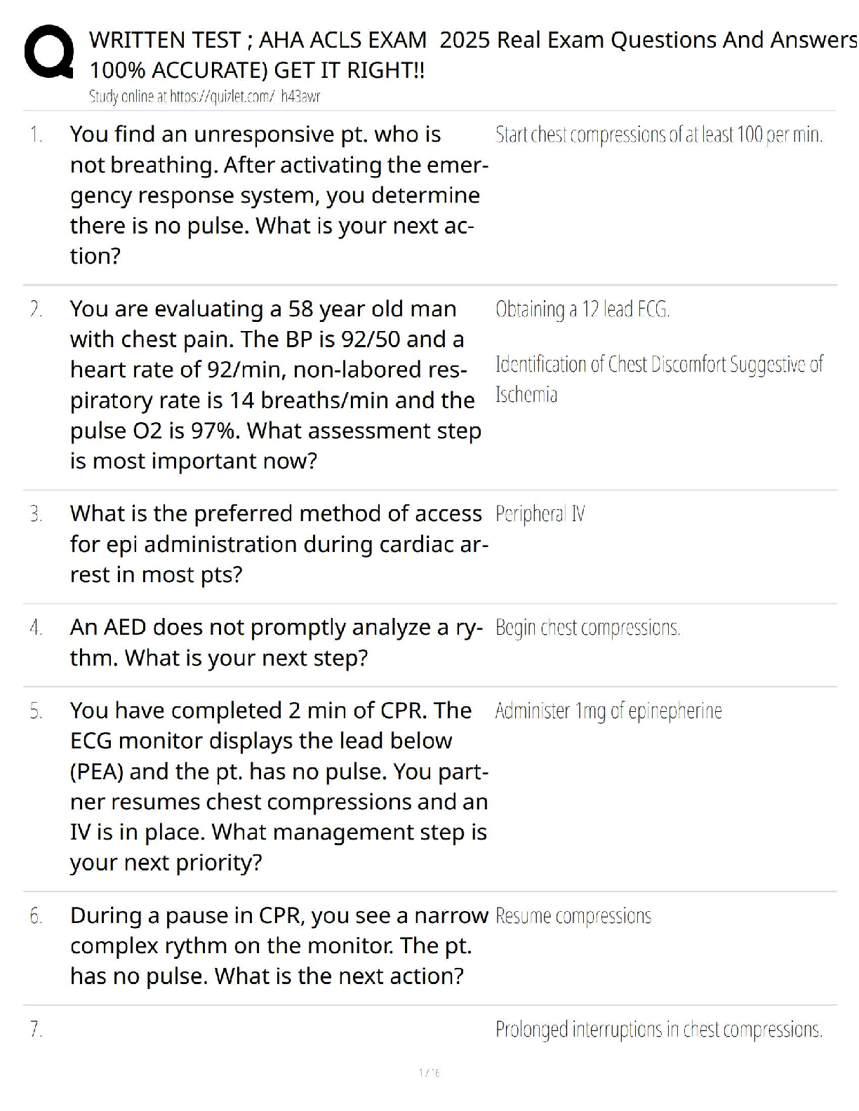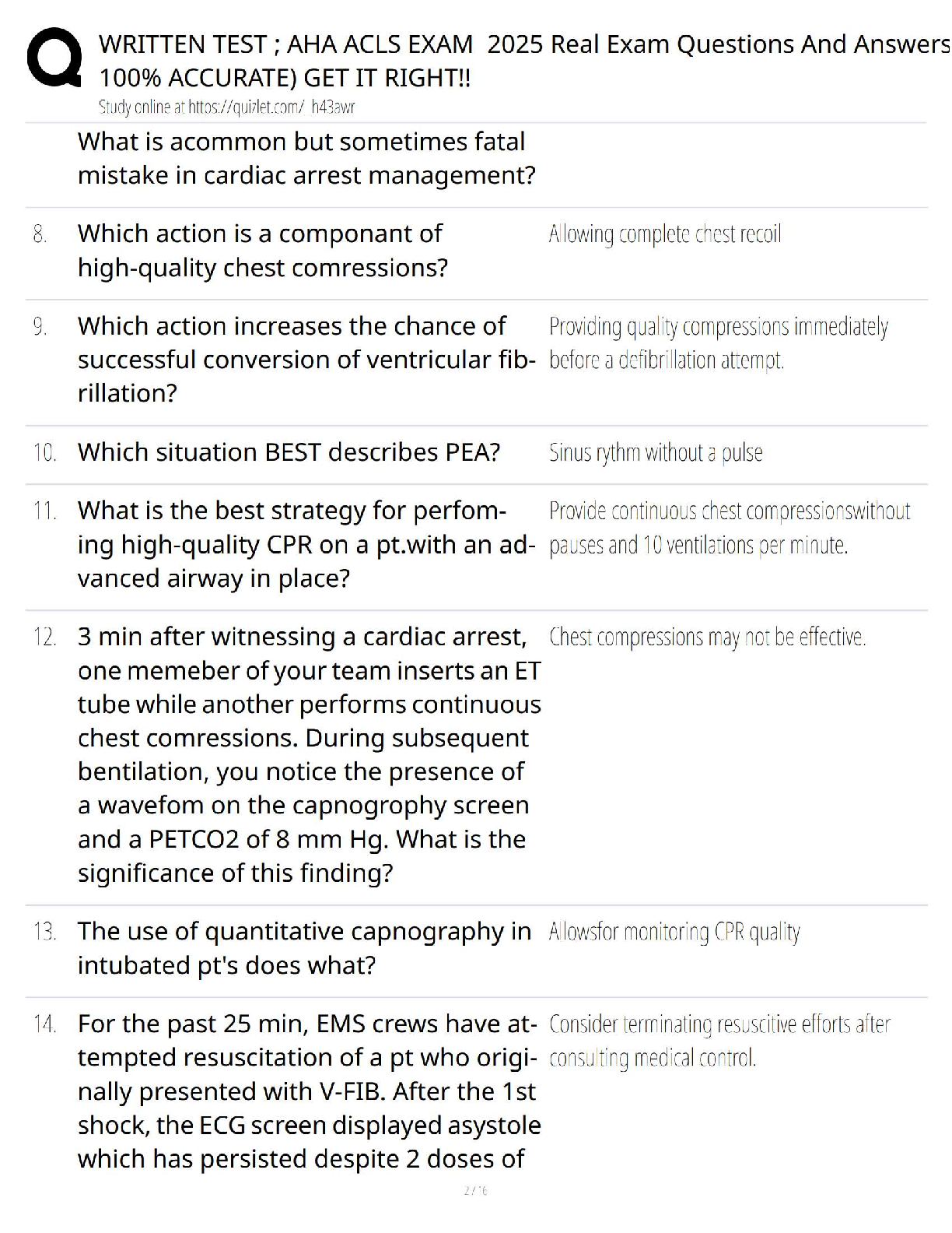 Prepare to ace your Advanced Cardiovascular Life Support (ACLS) certification with our comprehensive test bank based on the latest 2025 AHA guidelines. This essential resource features a complete collection of real exam questions with 100% accurate, verified answers directly from the official ACLS Provider Manual. This study guide is meticulously designed to cover all critical scenarios, algorithms, and pharmacology you'll face on the test. Master the material, build your confidence, and pass the AHA ACLS exam on your first attempt, saving you time and avoiding costly resits. Your path to successful certification starts here!