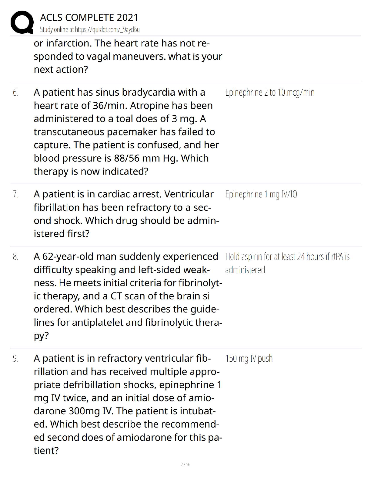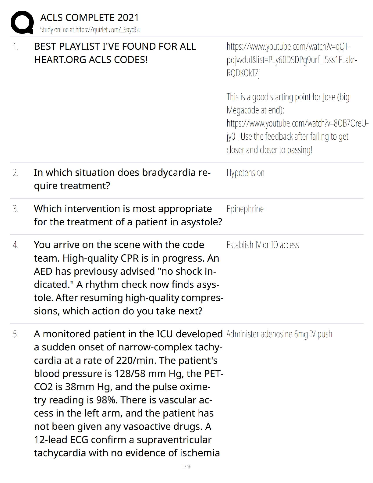 Ace your Advanced Cardiovascular Life Support (ACLS) certification with our comprehensive test bank, based on the 2021 American Heart Association (AHA) guidelines. This complete Q&A study guide covers all critical ACLS algorithms and scenarios, including bradycardia, asystole, tachycardia, and pharmacology. Each question comes with a verified answer, providing you with the essential knowledge to confidently tackle your exam. Designed for healthcare professionals aiming for first-time success, this resource is your ultimate tool to master ACLS concepts and pass your certification exam without the need for resits.