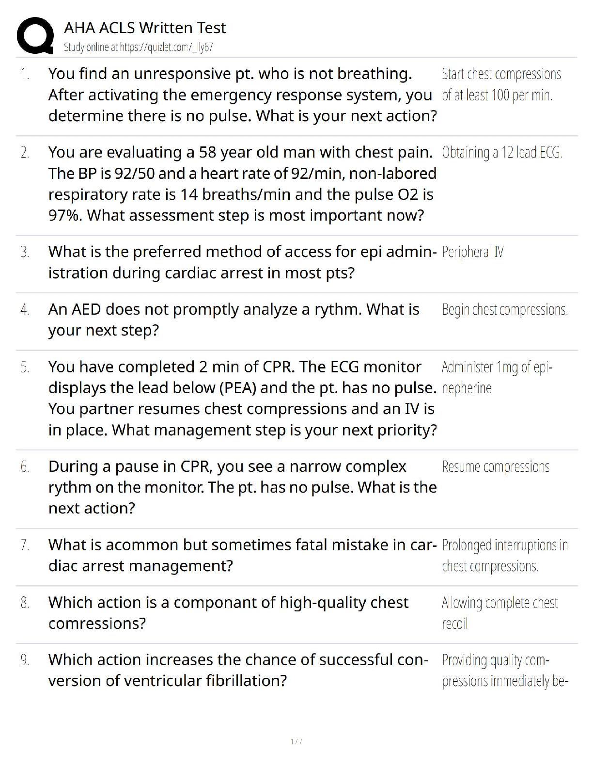 Prepare to ace your Advanced Cardiovascular Life Support (ACLS) certification with our comprehensive test bank for the 2025/2026 academic year. This essential study resource features a complete collection of questions and verified answers, meticulously aligned with the latest 2020 American Heart Association (AHA) guidelines. Covering all critical topics from the official written exam—including CPR protocols, rhythm analysis, pharmacology, and cardiac arrest management—this guide is designed to ensure you pass on your first attempt. Eliminate exam anxiety and avoid costly resits by mastering the exact type of questions you'll face. Download now for immediate access and take the most confident step towards your ACLS certification.