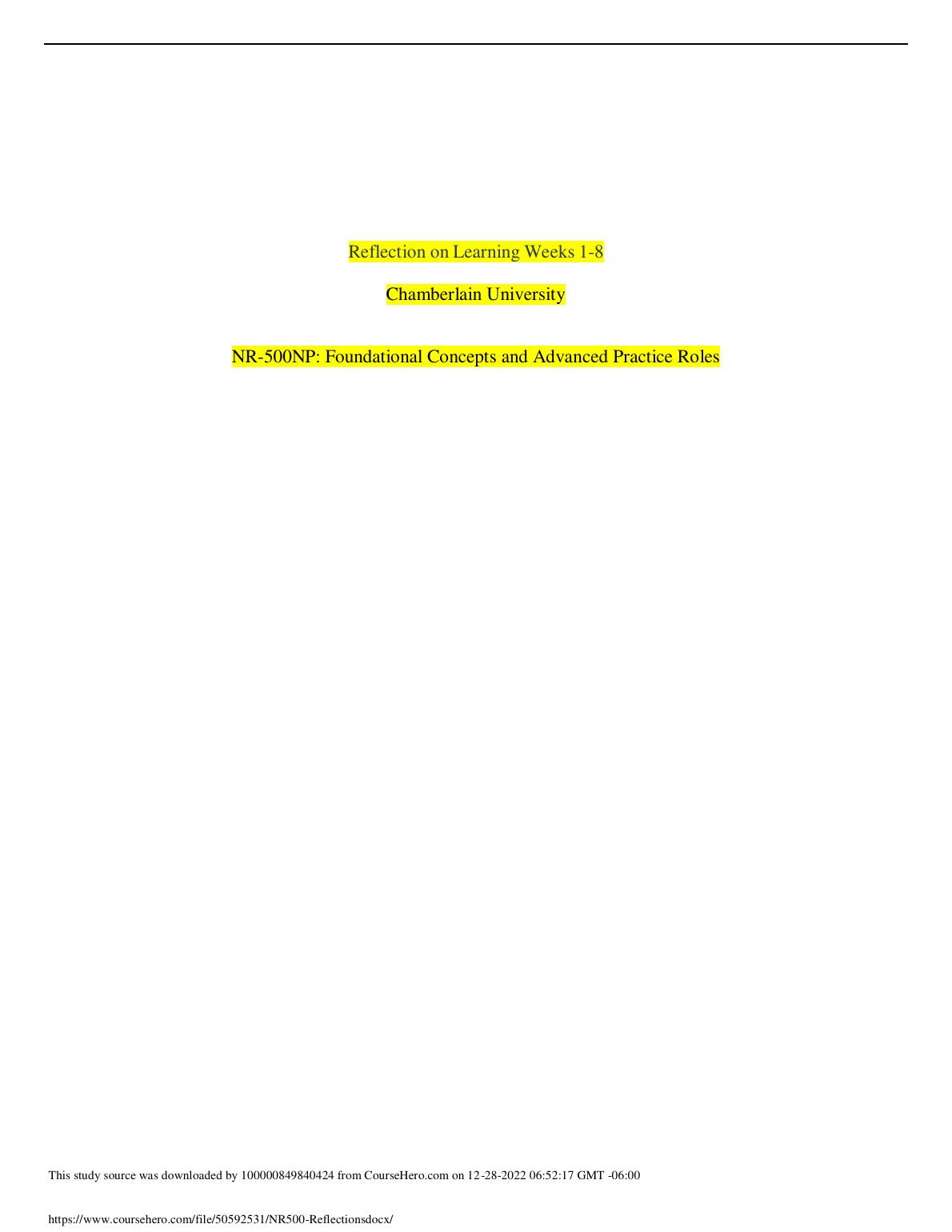 NR 500NP Reflection on Learning Weeks 1-8 Chamberlain University: Foundational Concepts and Advanced Practice Roles. DOWNLOAD on www.hackedexams.com INSTANTLY.