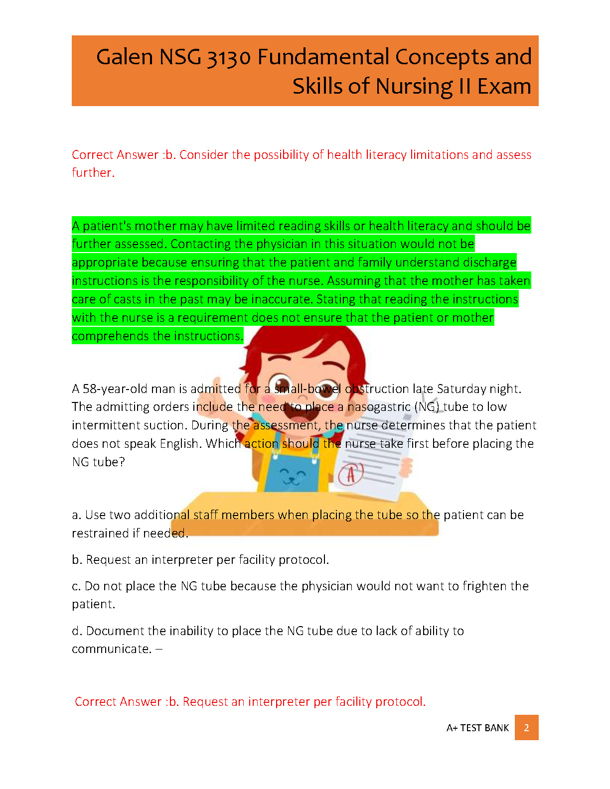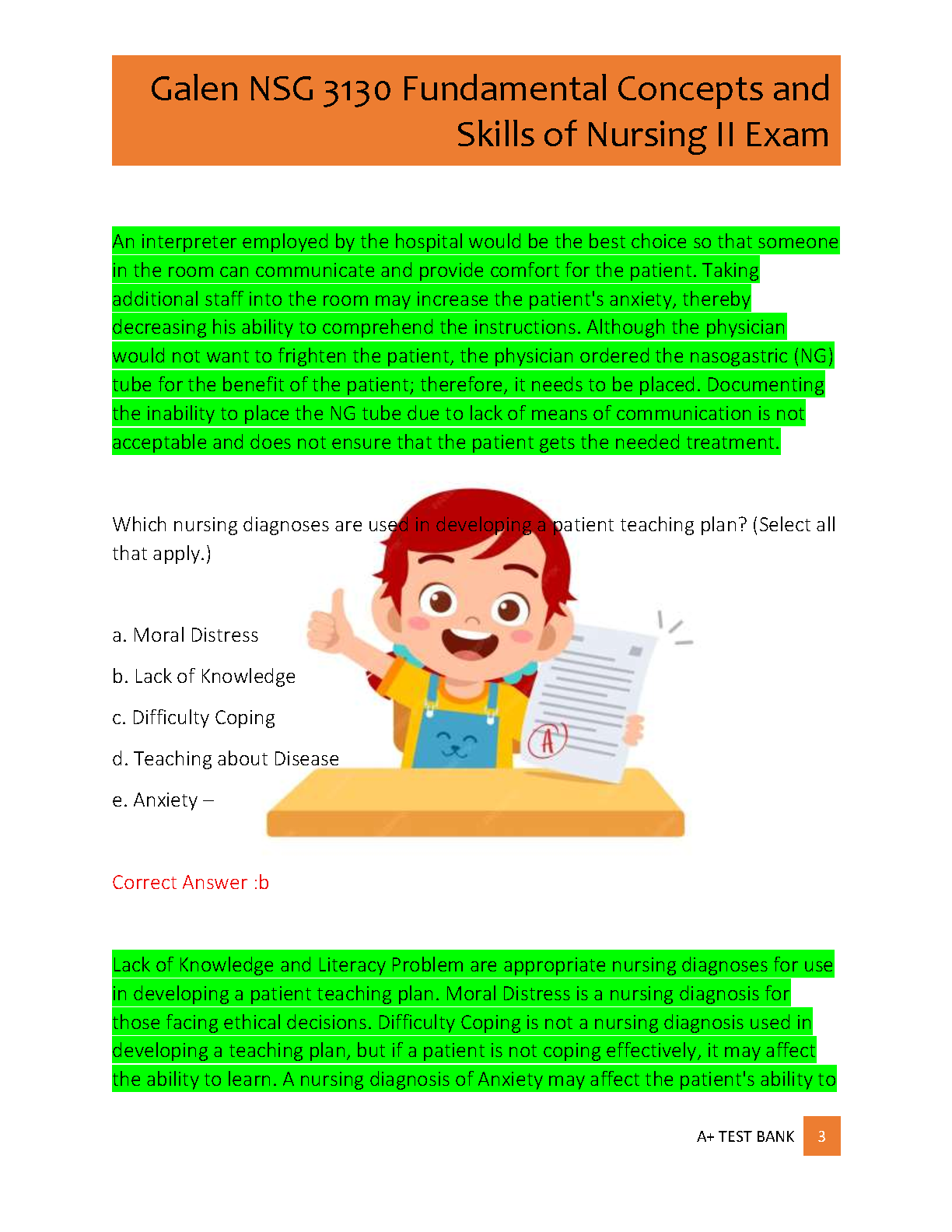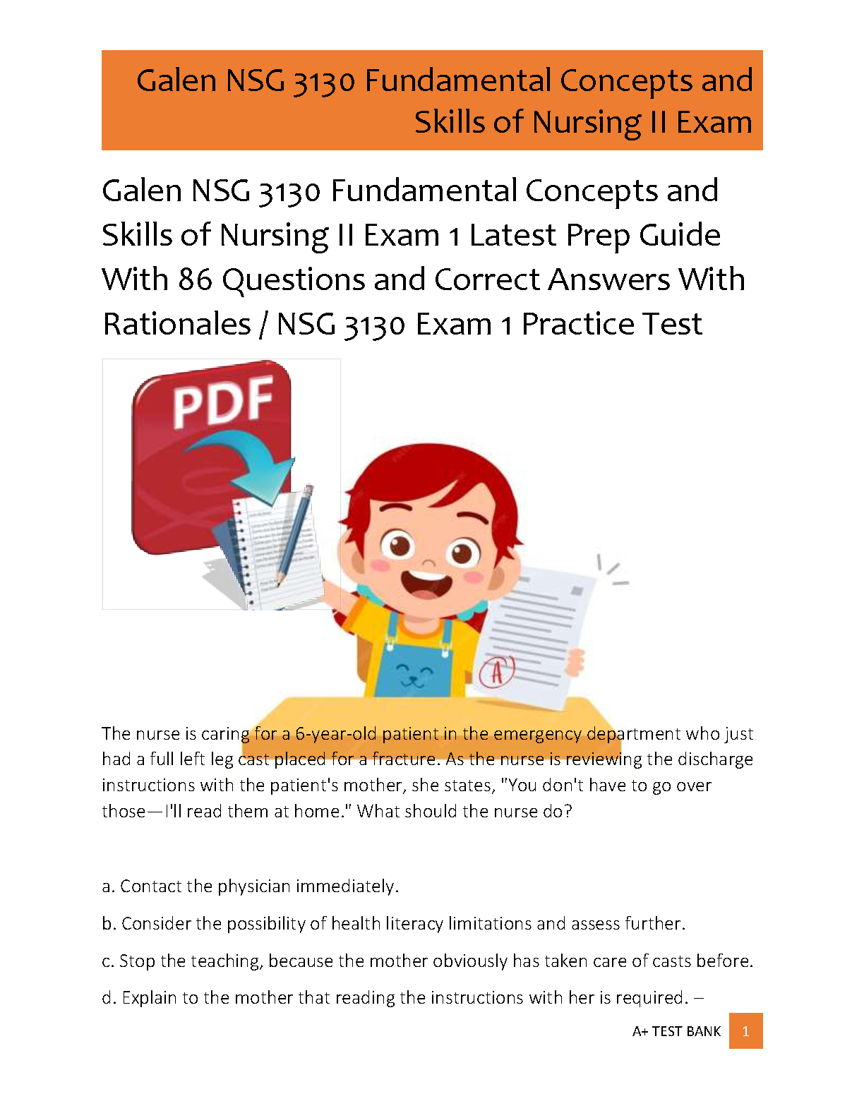 Achieve top marks with this essential test bank for the Galen College of Nursing course, NSG 3130: Fundamental Concepts and Skills of Nursing II, Exam 1. This comprehensive study resource includes 86 meticulously curated questions, complete with correct answers and detailed rationales. Designed to reflect the actual exam format and content, this prep guide helps you master critical nursing concepts, identify knowledge gaps, and build confidence for test day. Prepare effectively, understand the 'why' behind each answer, and excel in your nursing studies.