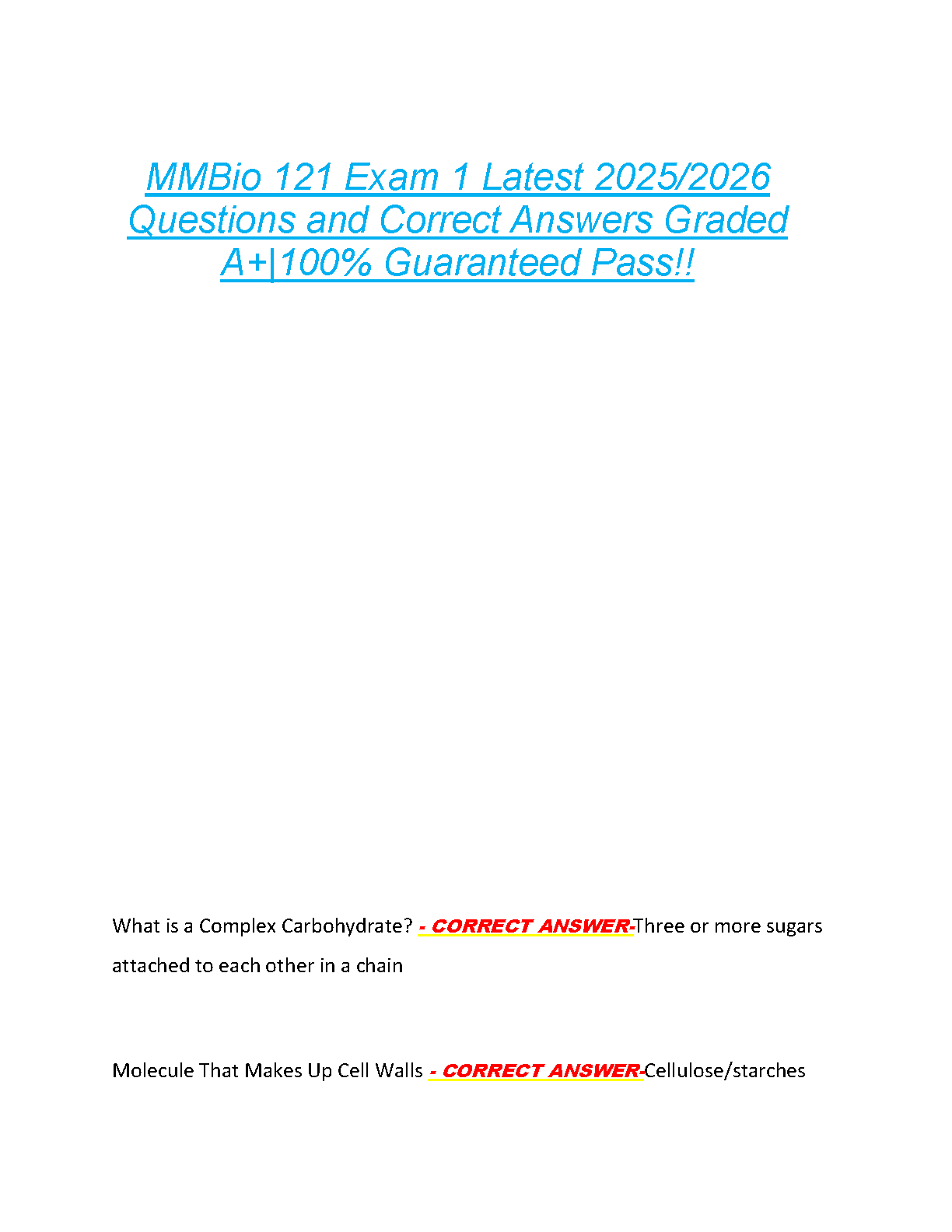 Ace your first microbiology exam with our comprehensive test bank for MMBio 121 Exam 1. This is the latest, updated resource for the 2025/2026 academic year, featuring a full collection of authentic exam questions and 100% correct, verified answers. Designed to help you master key concepts and achieve an A+ grade, this study guide is your key to passing on the first attempt and avoiding stressful resits. Download now for guaranteed success!