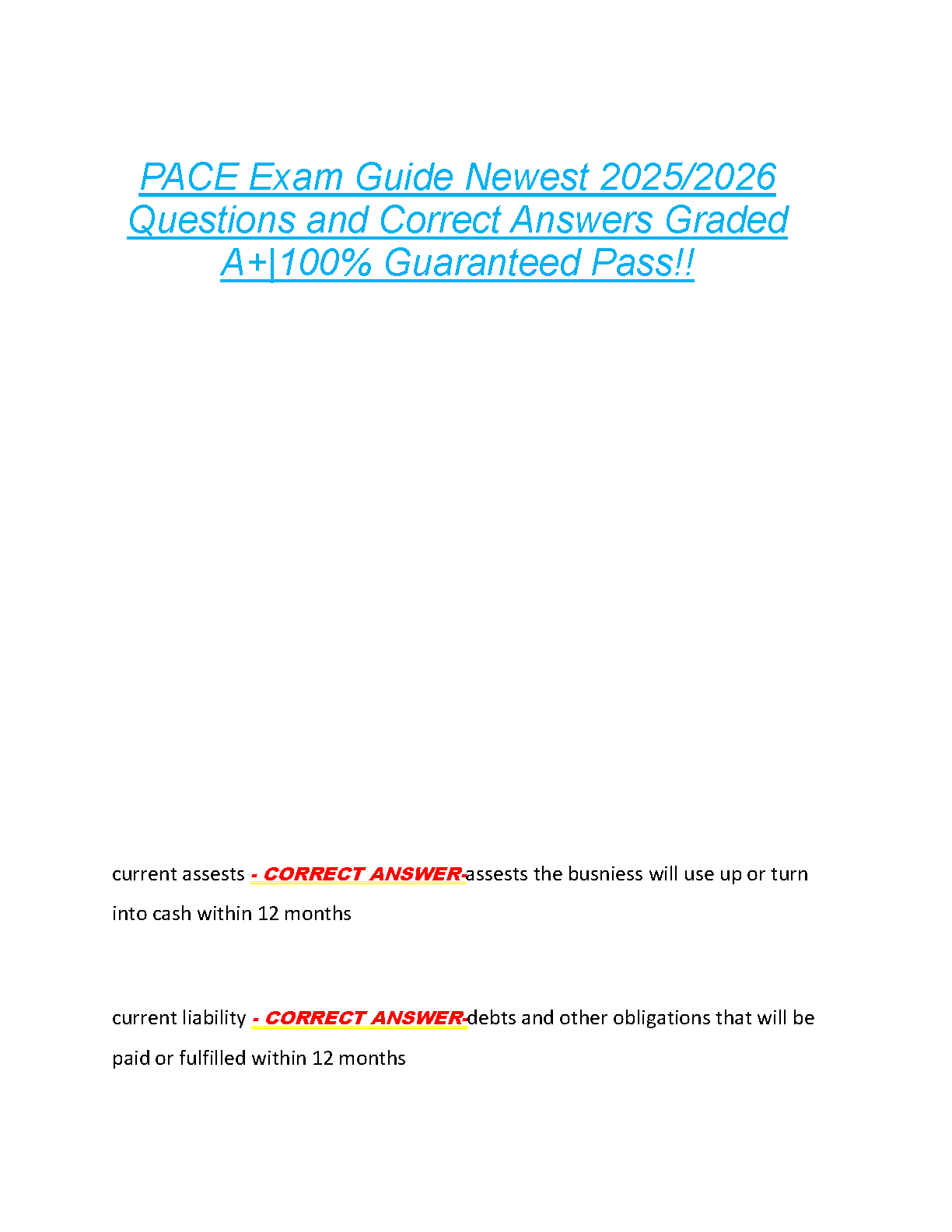 Ace your Professional Administrative Certification of Excellence (PACE) exam with our latest 2025/2026 Test Bank. This comprehensive study resource is meticulously designed to help you succeed on your first attempt. It features a vast collection of exam-style questions paired with 100% correct, verified answers, covering all essential topics. Prepare effectively, boost your confidence, and earn your PACE certification without the stress of resits. Get instant access to the ultimate study guide and guarantee your A+ result!