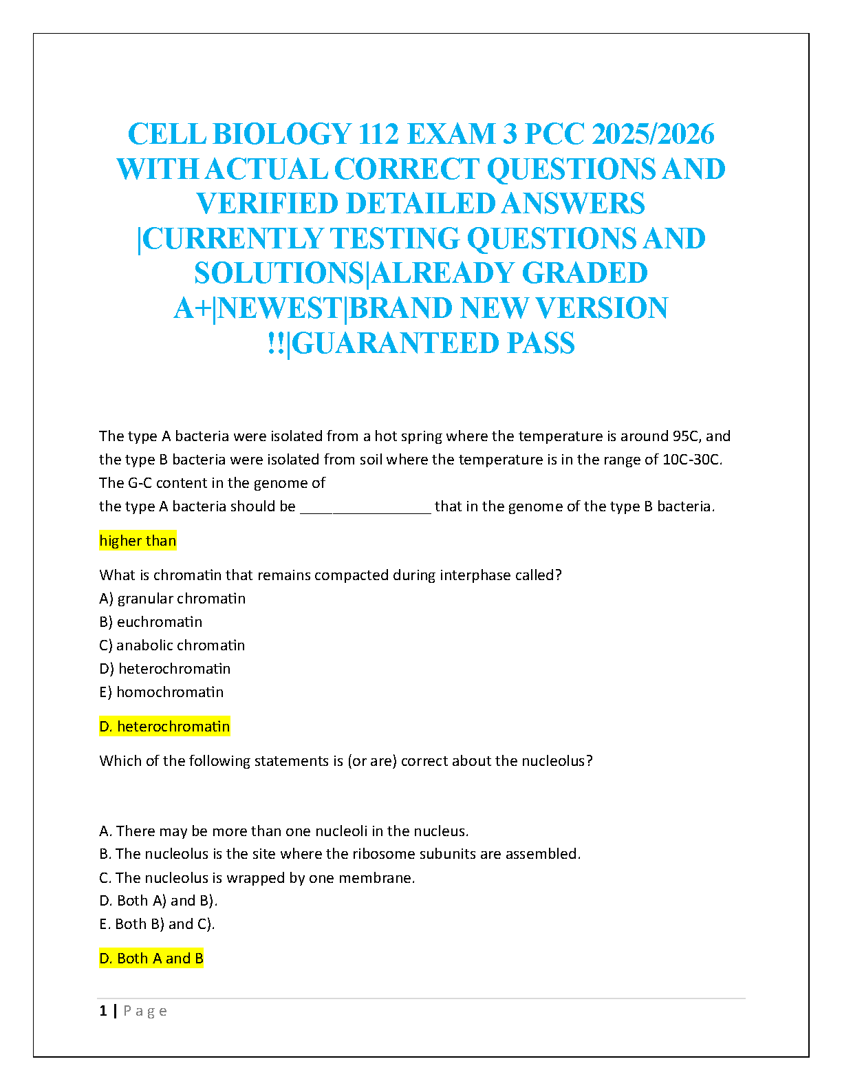 Cell Biology 112 Exam 3 PCC Test Bank | Latest 2025/2026 Edition | Questions & Verified Answers for A+ Grade