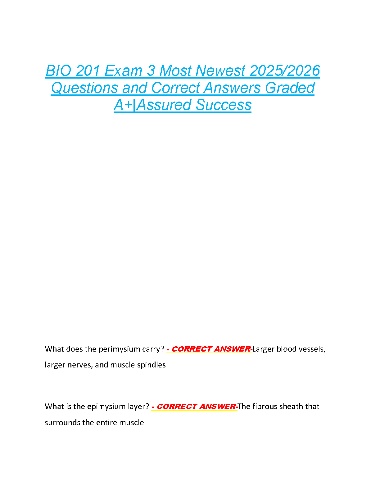 BIO 201 Exam 3 Test Bank (Latest 2025-2026 Edition) - Verified Questions and Answers for Guaranteed A+ Success