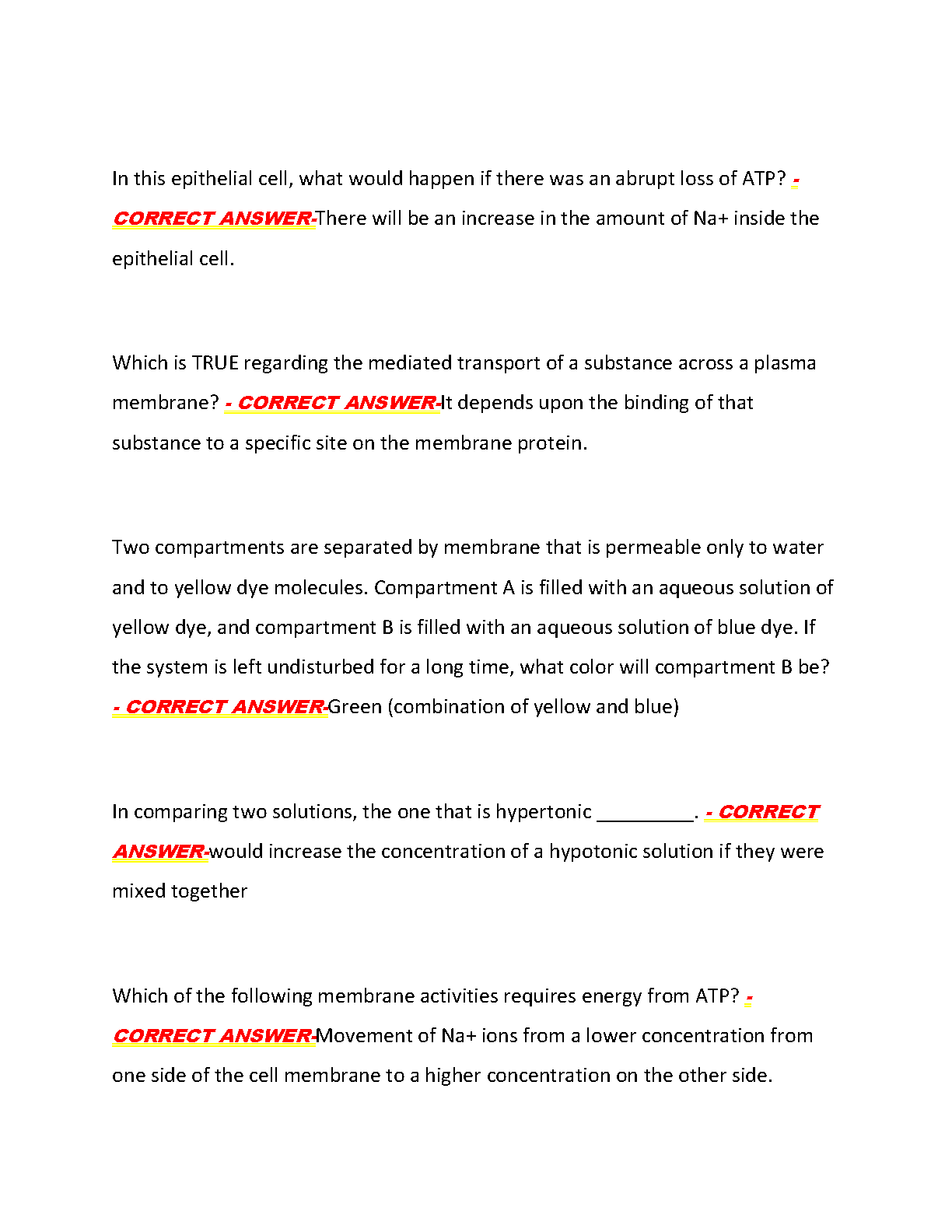 Master your Bio 201 course with confidence! This brand new 2025/2026 Test Bank is your ultimate tool for success. It provides an extensive collection of authentic exam questions, each with a detailed, correct answer, ensuring you are fully prepared. This resource is graded A+ and is specifically designed to help you understand complex topics like membrane transport and cellular processes, allowing you to pass your exams on the first try. Don't leave your grade to chance—get the study guide that guarantees results.