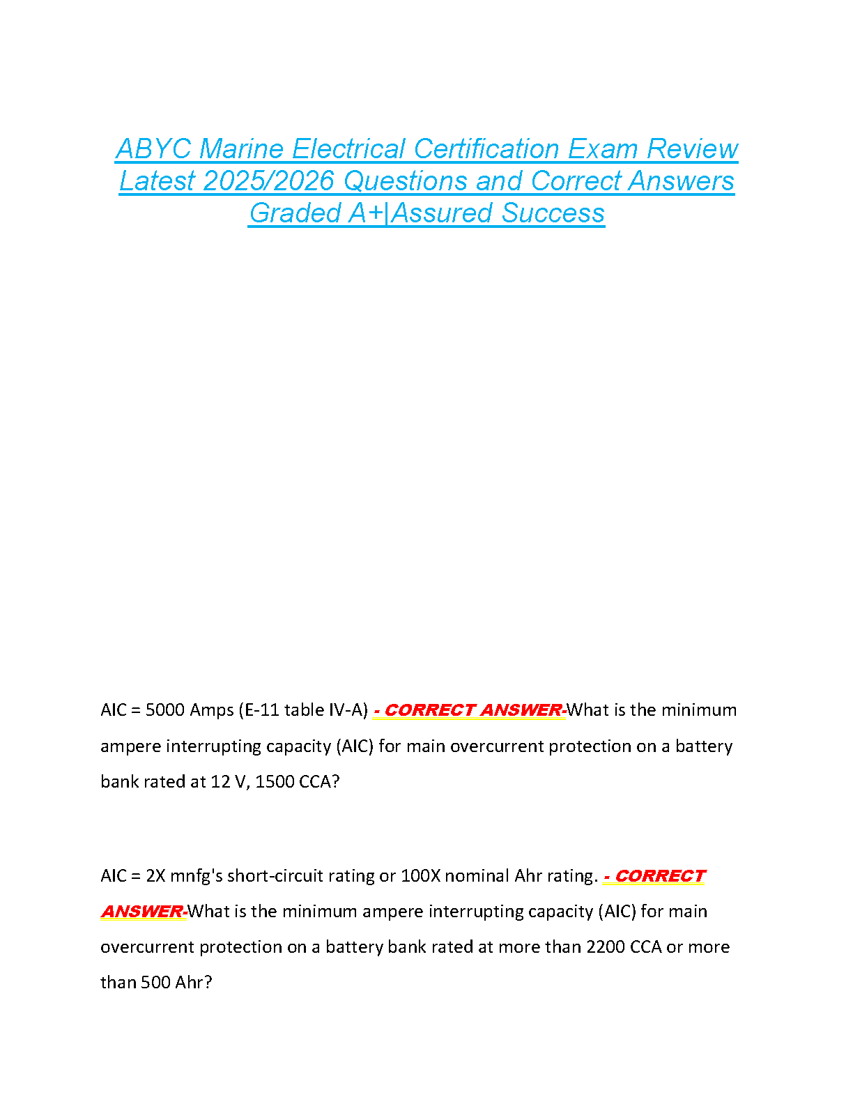 ABYC Marine Electrical Certification Test Bank: Latest 2025/2026 Exam Questions and Expert-Verified Answers for First-Attempt Success