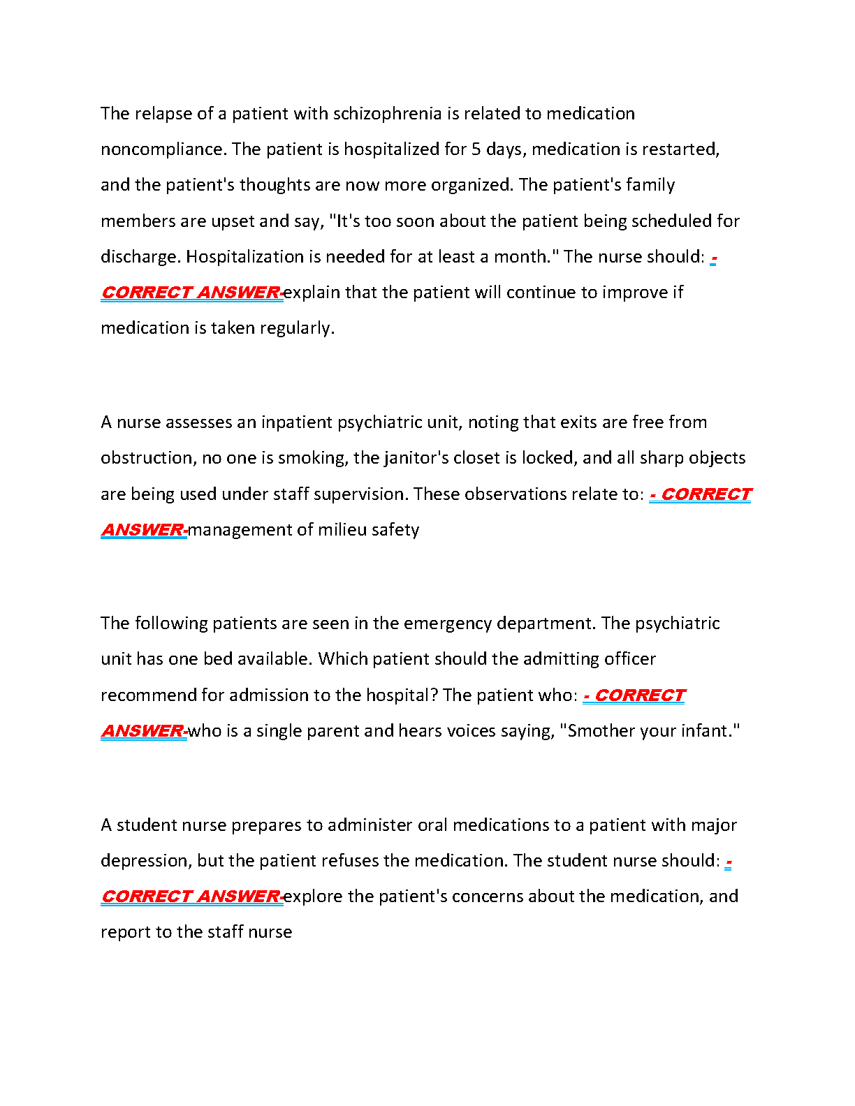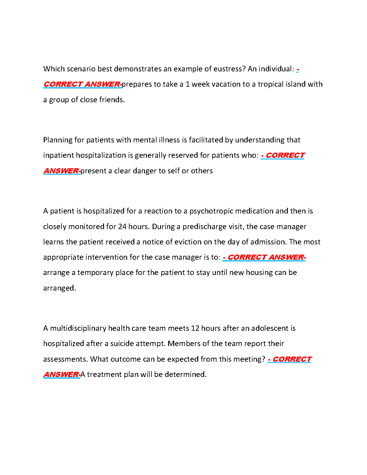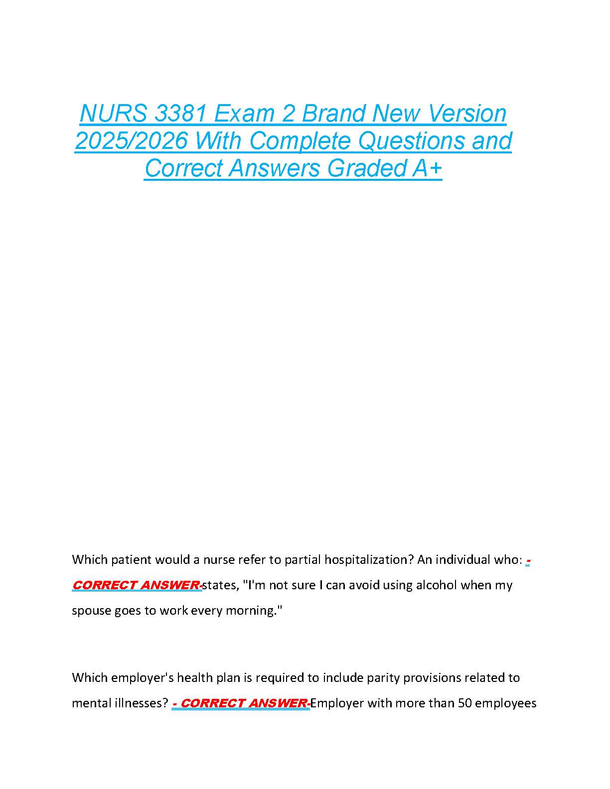 Ace your NURS 3381 Exam 2 with our comprehensive test bank, fully updated for the 2025/2026 academic year. This essential study guide features a complete collection of exam-style questions paired with detailed, accurate answers. Designed to cover key topics in mental health nursing, this resource will help you master the material, build confidence, and achieve an A+ grade on your exam. Download now and prepare to pass with flying colors!
