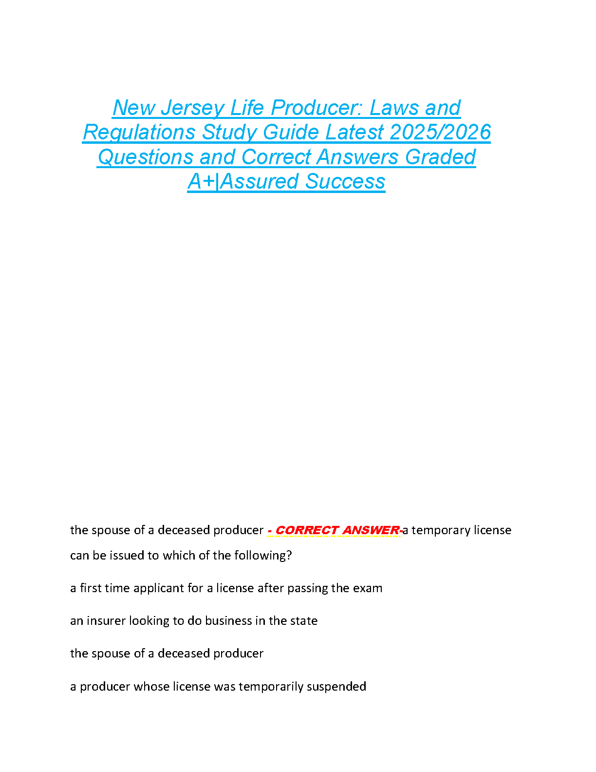 New Jersey Life Producer Exam Test Bank 2025/2026: Laws & Regulations Q&A Study Guide for Guaranteed Success