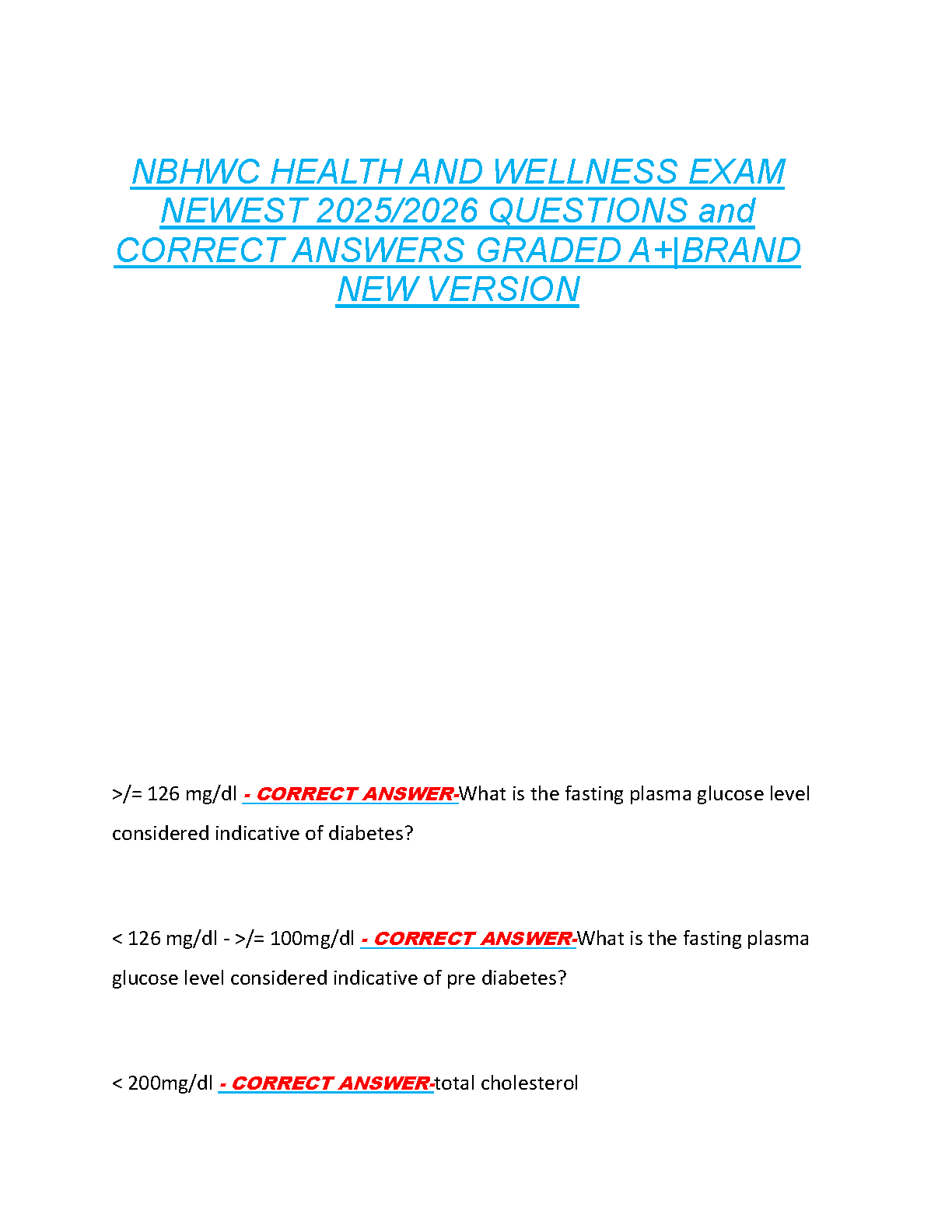 Ace your NBHWC Health and Wellness Coaching exam with our brand new test bank for 2025/2026. This comprehensive resource is packed with the latest exam questions and 100% correct, verified answers. Designed to help you study smarter and pass on your first attempt, this guide provides the in-depth preparation needed to achieve an A+ grade. Walk into your certification exam with confidence by mastering the key concepts covered in these practice questions.
