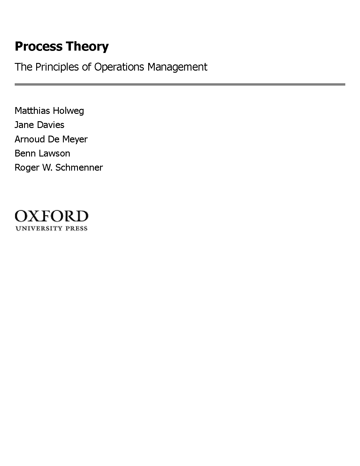 Test Bank for Process Theory: The Principles of Operations Management, 1st Edition by Matthias Holweg, Jane Davies, Arnoud De Meyer, Benn Lawson, and Roger W. Schmenner