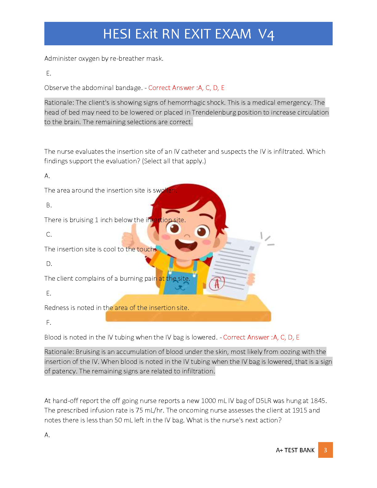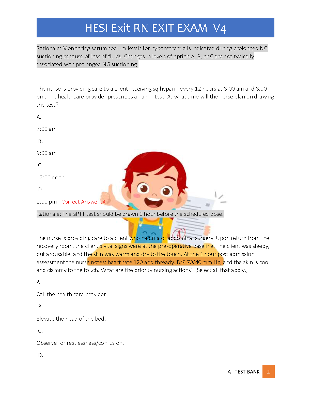 Ace your nursing school finals with the ultimate study guide for the HESI Exit RN Exam V4. This comprehensive test bank features a complete collection of verified questions and detailed, accurate answers. Designed to mirror the actual exam, this resource is your key to mastering the material, boosting your confidence, and passing the HESI Exit Exam on your first try. Download the PDF instantly and start your journey to becoming a registered nurse!