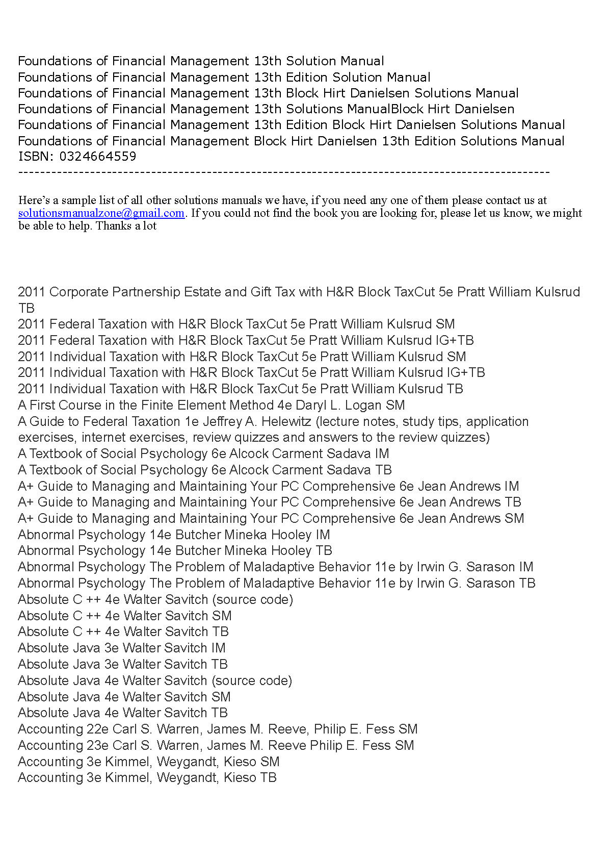 Solutions Manual for Foundations of Financial Management, 13th Edition by Stanley B. Block, Geoffrey A. Hirt, and Bartley R. Danielsen