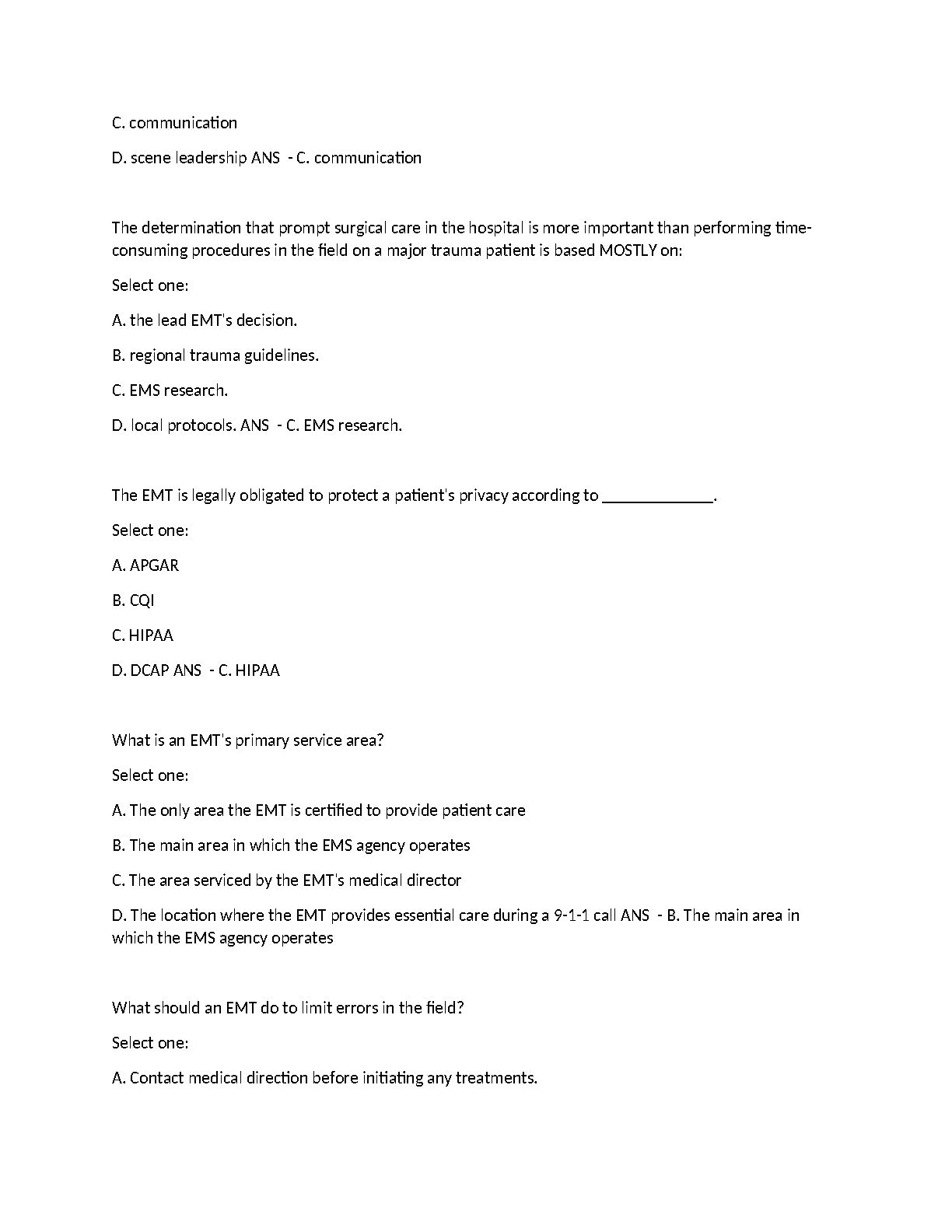 Master your upcoming West Coast EMT Block Exam #1 with this essential study guide. This comprehensive resource provides a complete set of exam questions, each paired with a 100% correct and verified answer. Designed to cover all key topics and concepts, this guide is your ultimate tool for effective preparation, helping you build confidence and ensure you pass on your first attempt. Download now to start studying smarter and secure your success!
