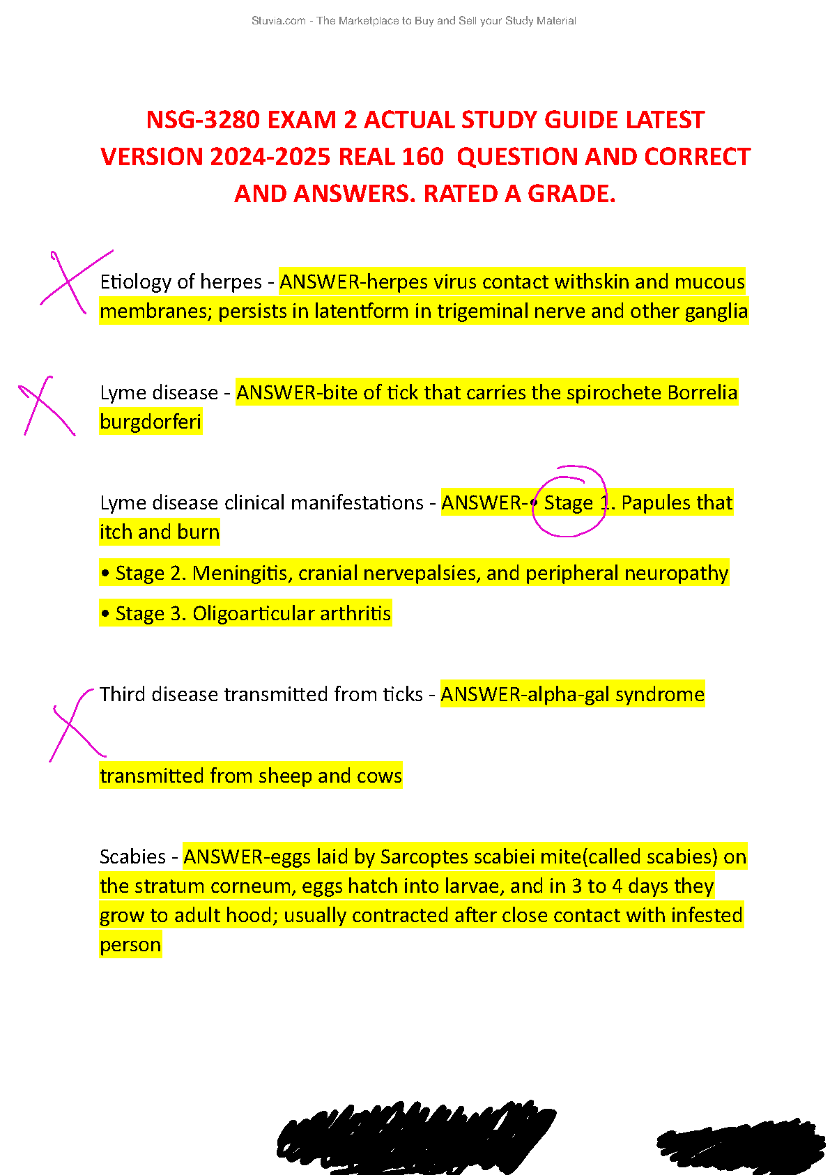 Unlock your full potential and ace your NSG-3280 Exam 2 with this comprehensive study guide for the 2024-2025 academic year. This A-grade rated resource, authored by TeachMe2Expert, provides 160 real exam questions with verified, correct answers. Stop struggling and start studying smarter. This guide is your ultimate tool to master the course material, build confidence, and pass your exam on the first try, eliminating the need for costly and stressful resits.