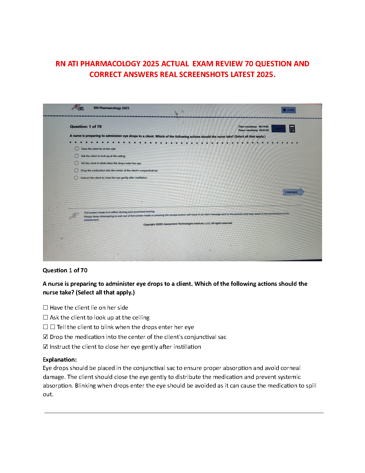 Excel in your nursing studies with the latest ATI RN Pharmacology 2025 Test Bank. This essential study guide contains 70 real exam questions, each accompanied by a verified correct answer and a detailed rationale to deepen your understanding. Designed for the 2025/2026 academic year, this resource is your key to mastering complex pharmacological concepts and confidently passing your ATI exam on the first attempt. Avoid resits and achieve academic success with this comprehensive and up-to-date preparation tool.