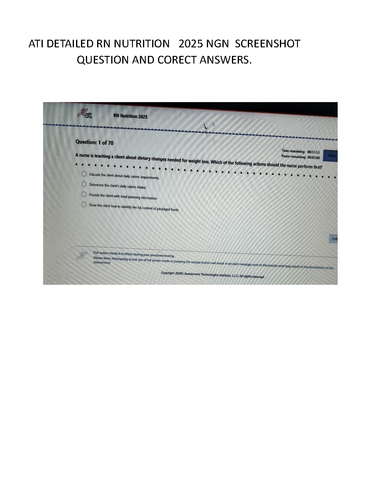 ATI RN Nutrition 2025 NGN Test Bank | Latest 2025/2026 Edition Q&A Study Guide to Pass Your Exam