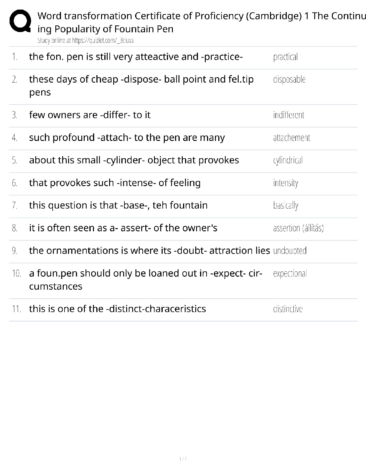 Unlock your potential and conquer the Cambridge C2 Proficiency (CPE) exam with our newly updated 2025/2026 study guide! This resource provides a targeted word transformation practice exercise, complete with answers, centered around the engaging topic of fountain pens. Designed to sharpen your morphological skills and expand your advanced vocabulary, this guide is essential for mastering the Use of English paper. Prepare effectively, build your confidence, and ensure you pass your C2 exam on the very first attempt, avoiding costly and time-consuming resits. Get the edge you need for success!