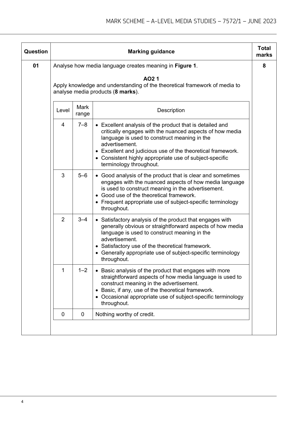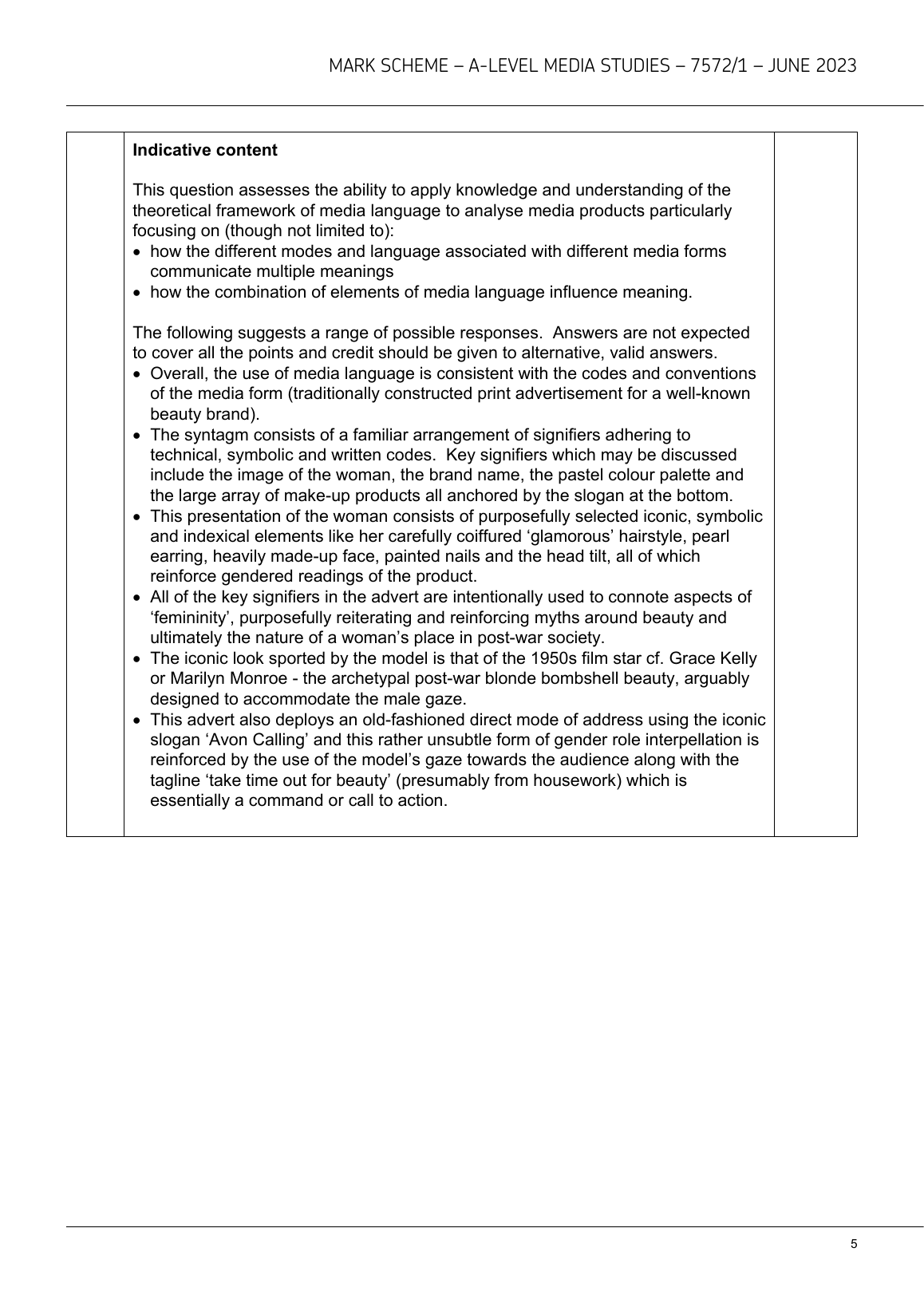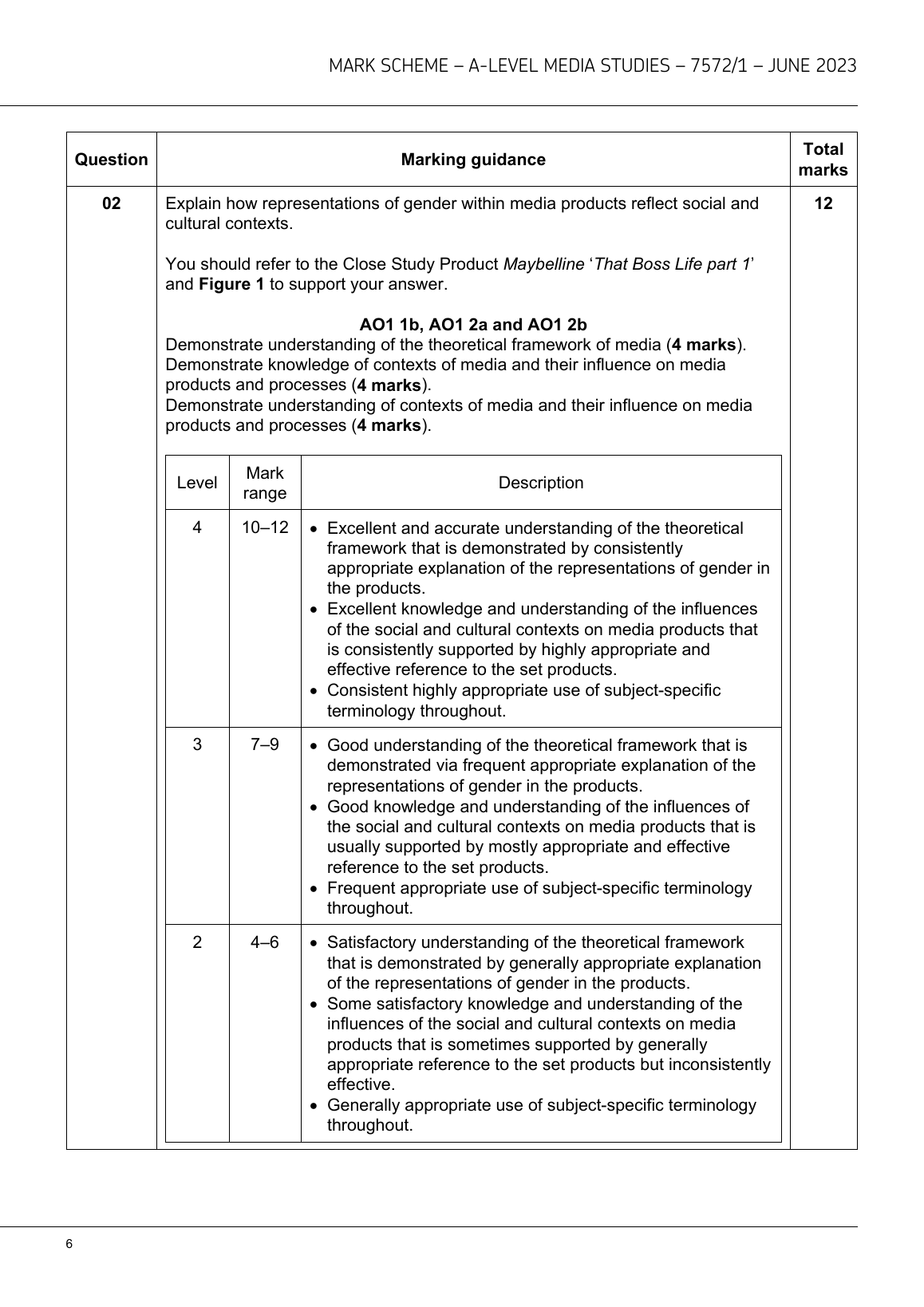 AQA A LEVEL MEDIA STUDIES PAPER 1 JUNE 2023 MARK SCHEME (7572/1: Media One)
