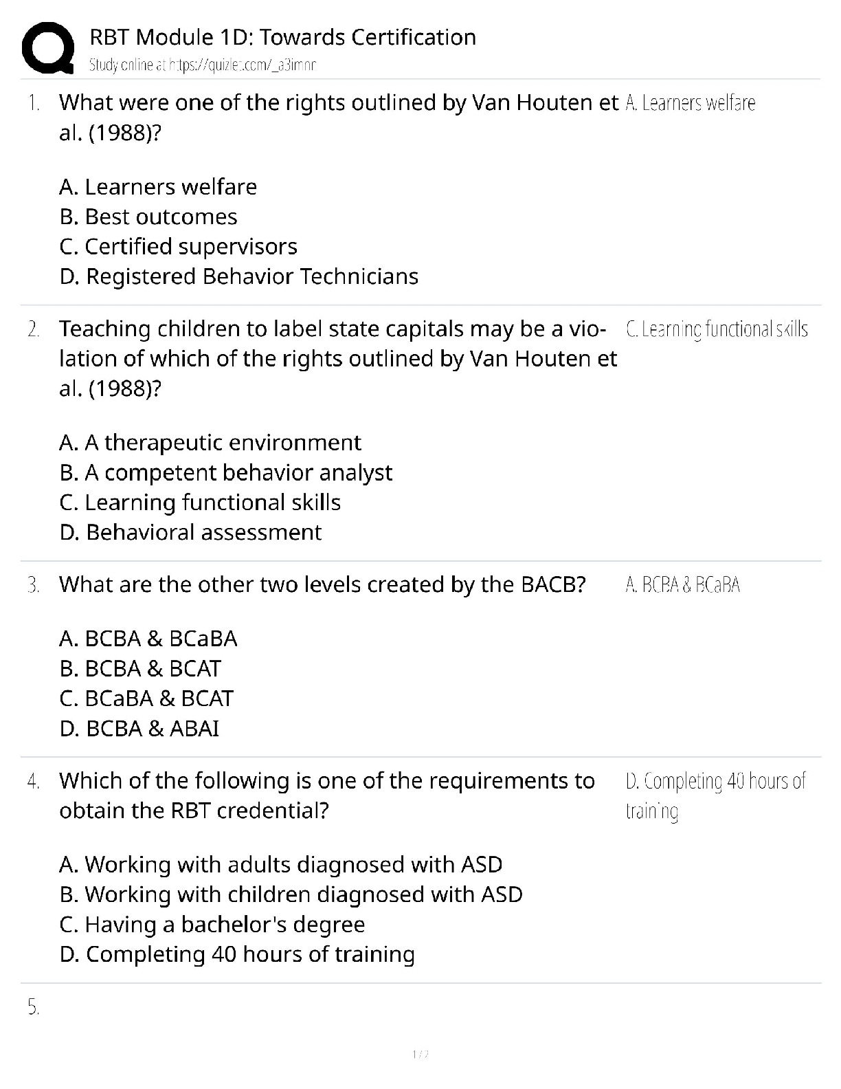 Ace your Registered Behavior Technician (RBT) certification exam with this comprehensive test bank for Module 1D: Towards Certification. This study guide features a complete set of exam-style questions paired with verified, 100% correct answers. Master key concepts, including client rights as outlined by Van Houten et al., BACB credentialing requirements, and the steps towards becoming a certified RBT. This resource is expertly designed to help you study efficiently, build confidence, and pass your RBT exam on the first try. Download now to get started on your path to certification!