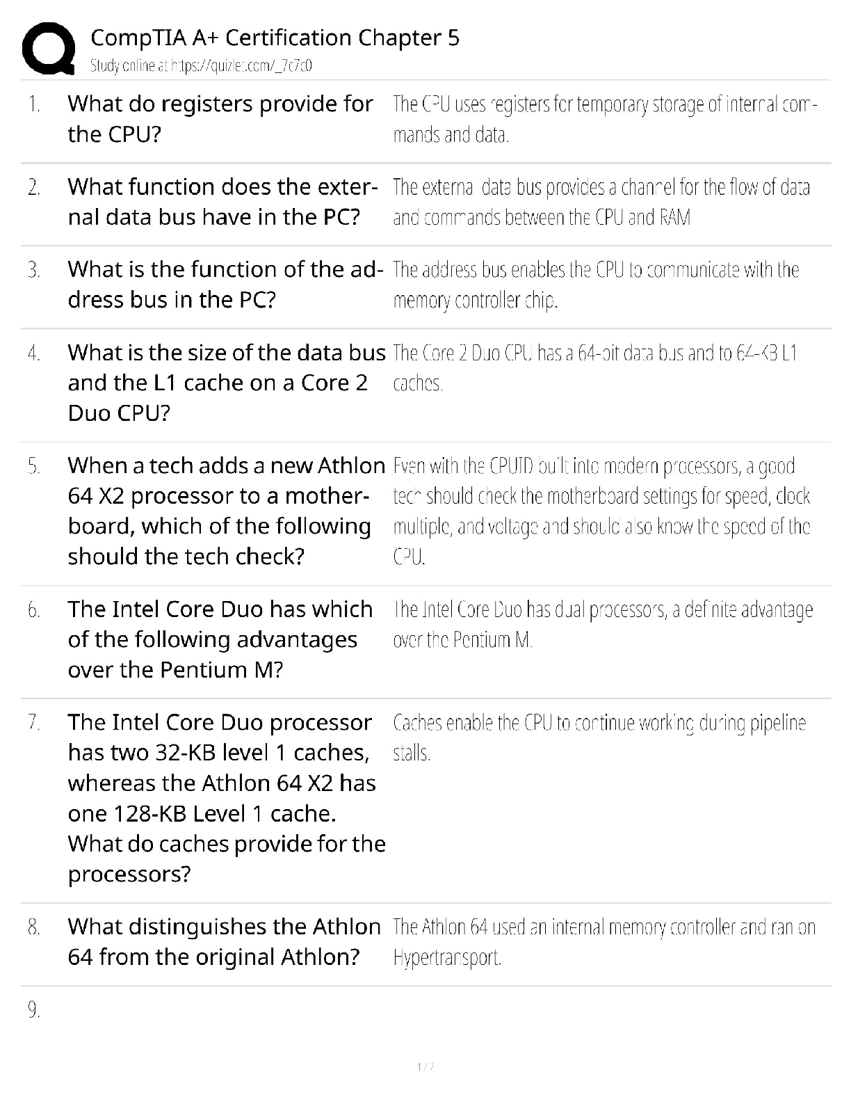 Ace your CompTIA A+ certification exam on the first try with our comprehensive Test Bank for Chapter 5, fully updated for the 2025/2026 academic year. This essential study resource provides detailed questions and verified answers covering crucial topics for the Core 1 (220-1101) exam. Master the fundamentals of CPUs and processors, including registers, external data buses, address buses, L1 cache, and the key differences between processors like Intel Core Duo and AMD Athlon 64. Avoid costly resits and build your confidence with this targeted exam preparation tool designed for success.
