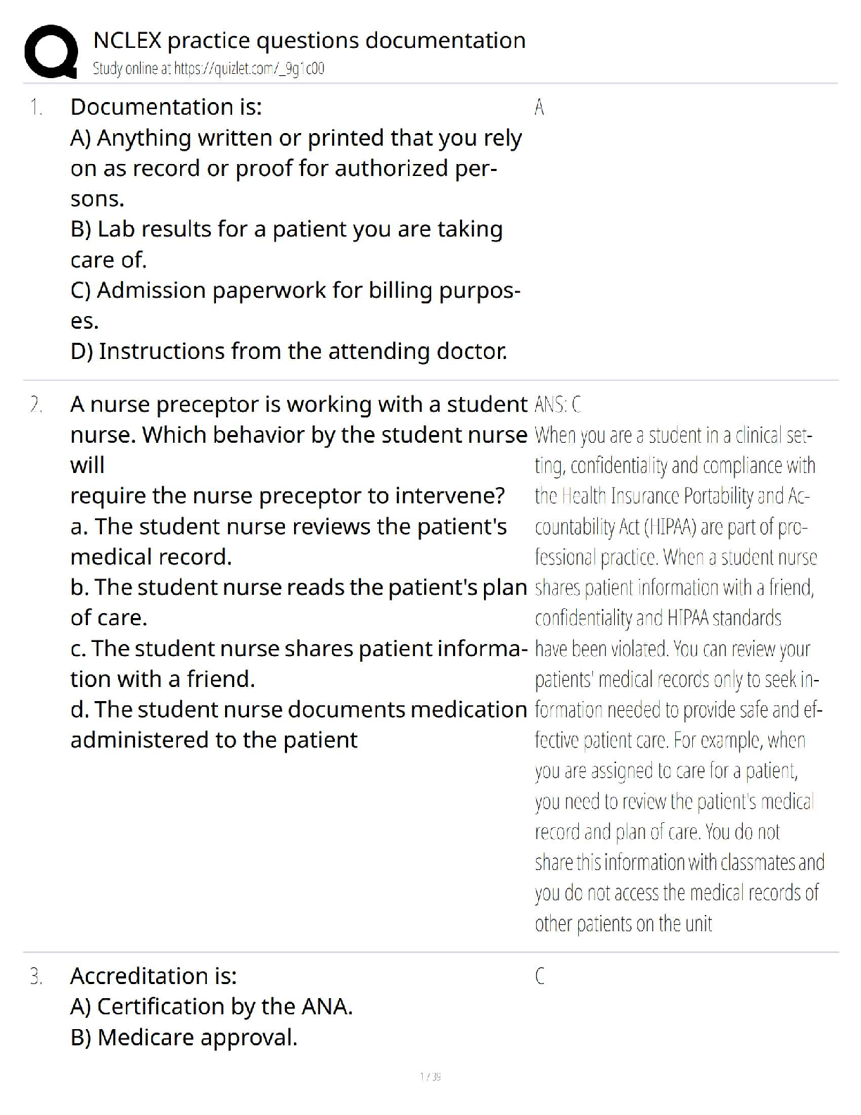 Ace your NCLEX exam on the first try with our latest 2025/2026 collection of practice questions and detailed rationales. This comprehensive study guide provides a wealth of meticulously crafted questions covering essential nursing topics, including documentation, patient confidentiality (HIPAA), and professional standards. Each question is paired with a clear, in-depth rationale to help you understand the core concepts, not just memorize answers. Boost your confidence, master critical thinking skills, and walk into your exam fully prepared to succeed. Avoid the stress of resits by using this essential tool for NCLEX success.