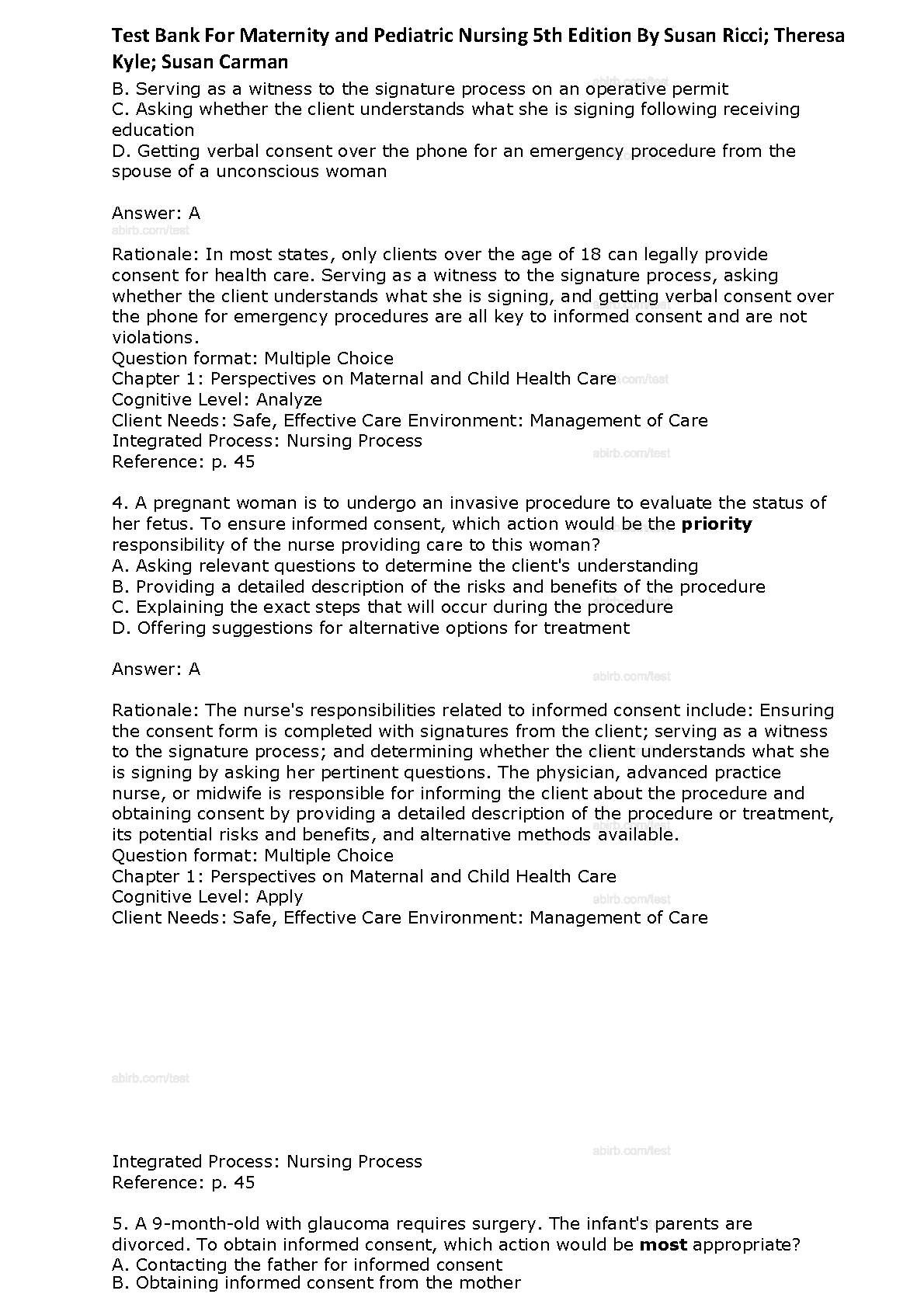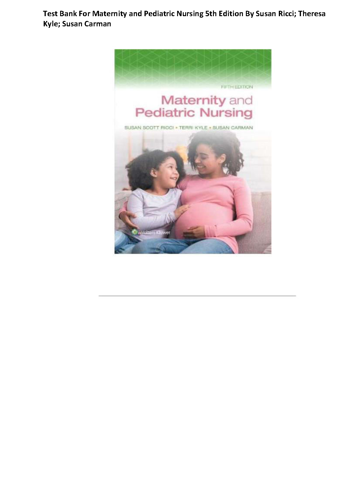 Test Bank for Maternity and Pediatric Nursing, 5th Edition by Susan Scott Ricci, Terri Kyle, and Susan Carman