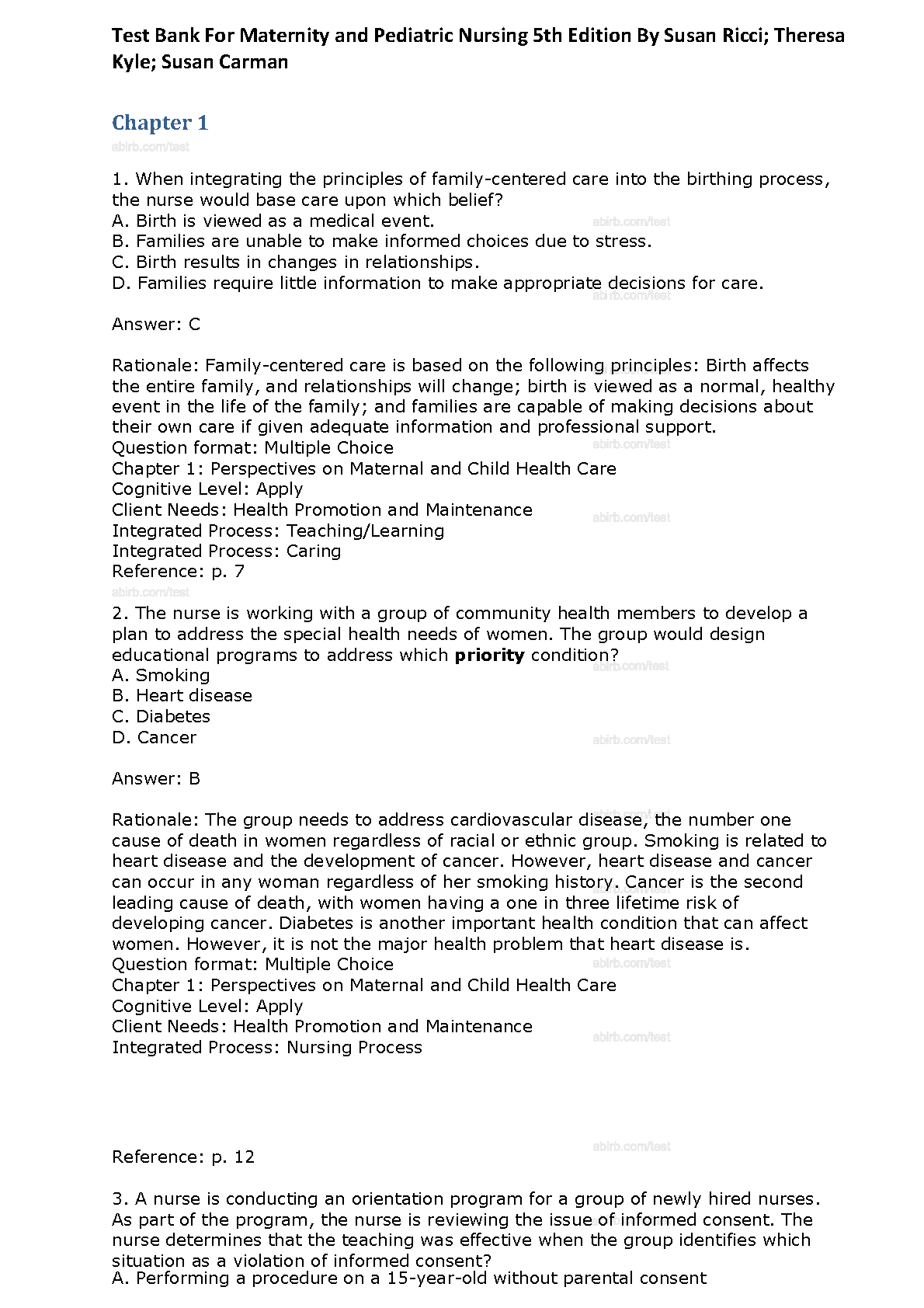 Gain a critical edge in your studies with the comprehensive Test Bank for Maternity and Pediatric Nursing, 5th Edition, authored by Ricci, Kyle, and Carman. This invaluable resource is packed with a wide array of practice questions and detailed answers covering every chapter of the textbook. It's expertly designed to sharpen your critical thinking, reinforce key concepts, and prepare you for exam success. By simulating the actual test environment, this test bank helps you identify your strengths and weaknesses, ensuring you walk into your exam with confidence and achieve outstanding results.