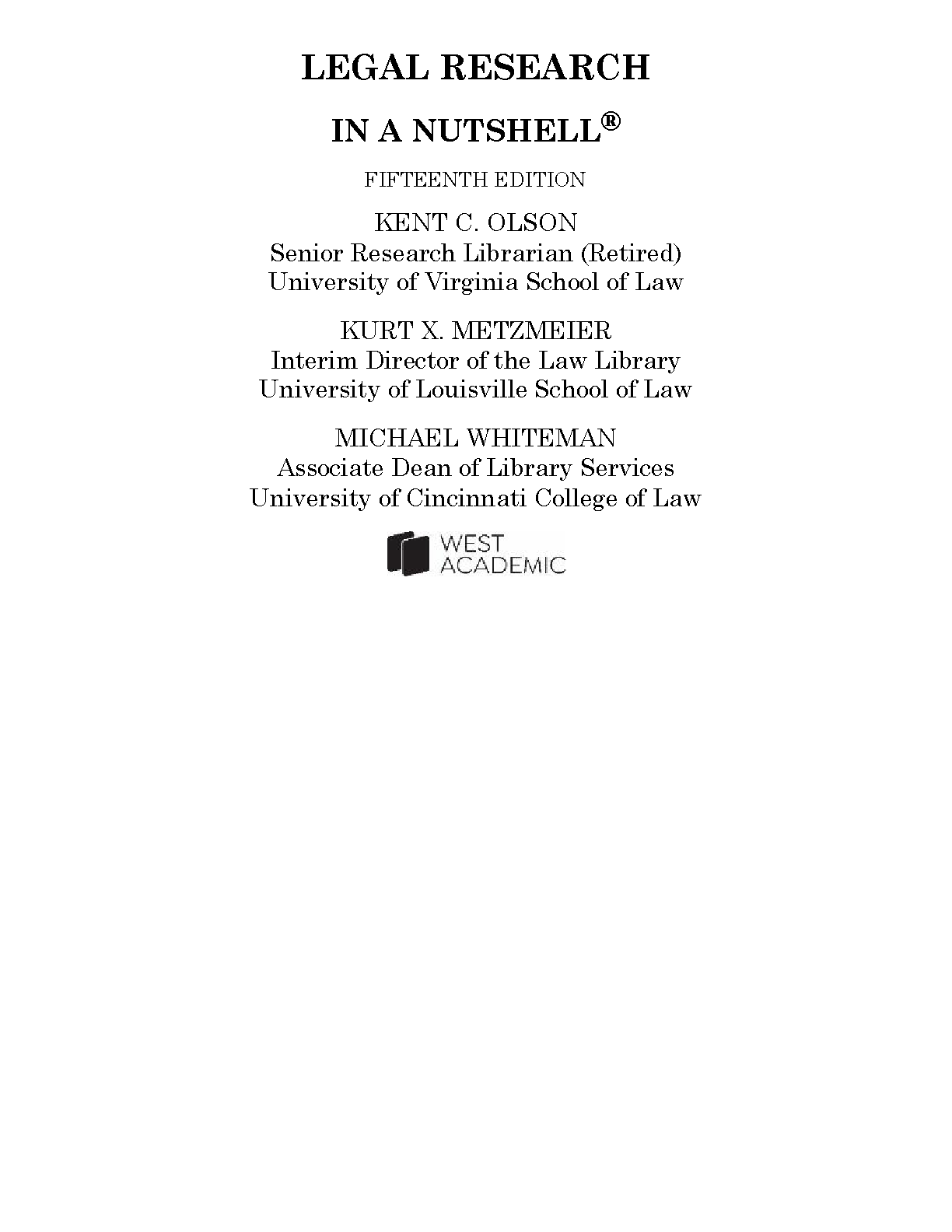 Legal Research in a Nutshell, 15th Edition by Kent C. Olson, Kurt X. Metzmeier & Michael Whiteman | 2025/2026 Exam Success Guide