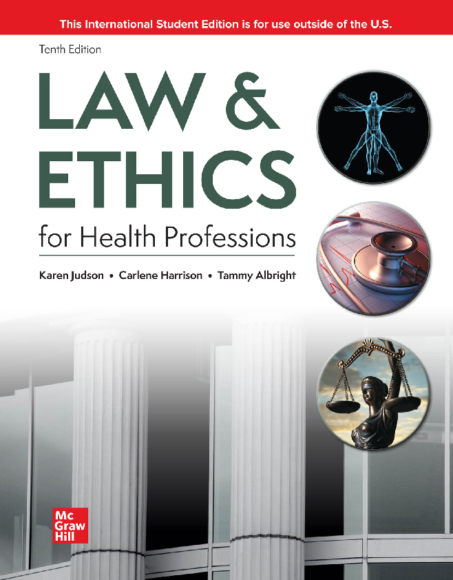 Test Bank for Law & Ethics for Health Professions, 10th Edition by Karen Judson, Carlene Harrison, and Tammy Albright