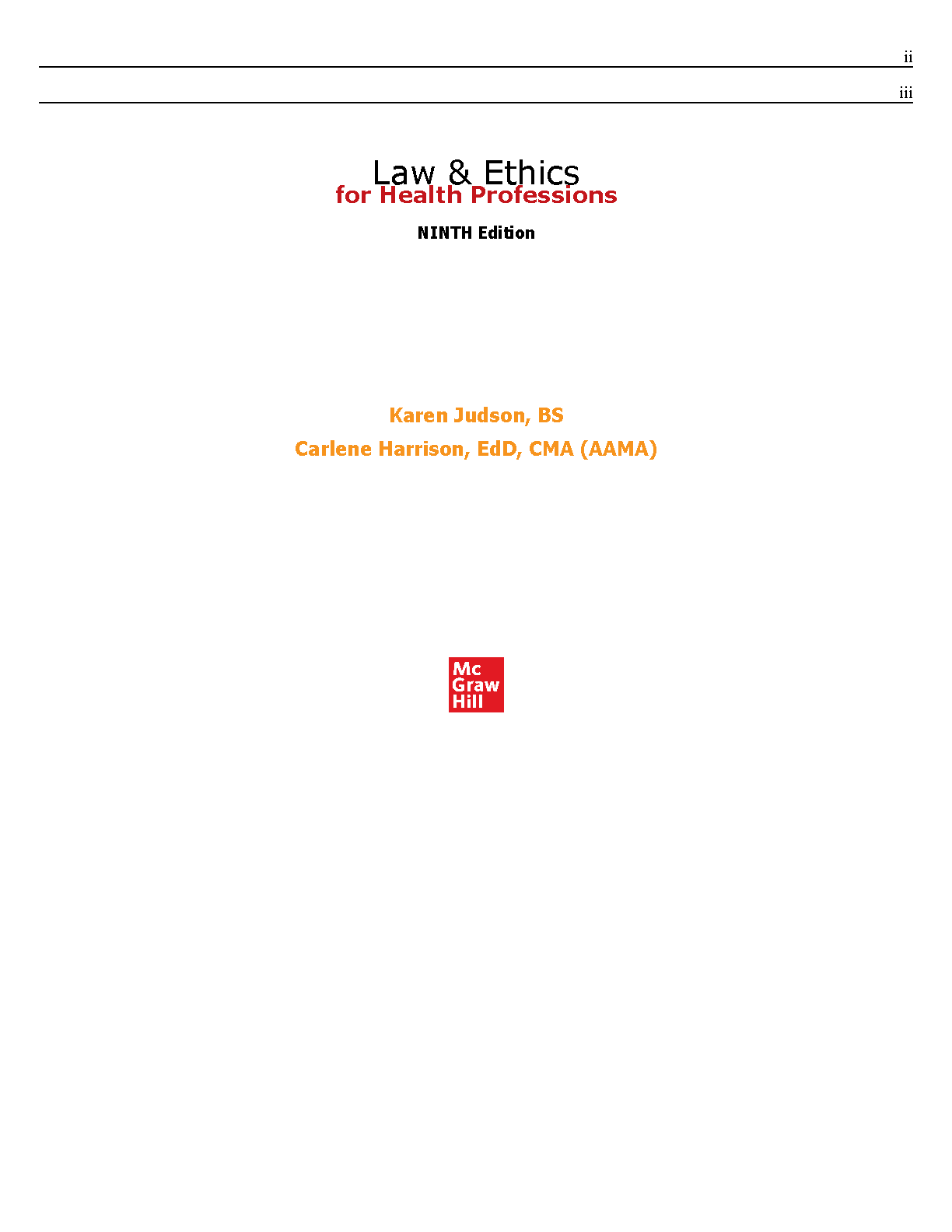 Test Bank for Law & Ethics for Health Professions, 9th Edition by Karen Judson & Carlene Harrison